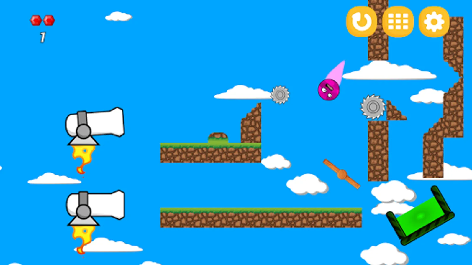 Solve the puzzles and blast the pink balls into the goal while helping them avoid obstacles.