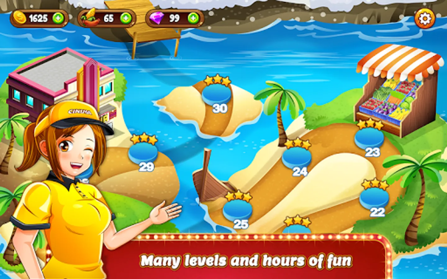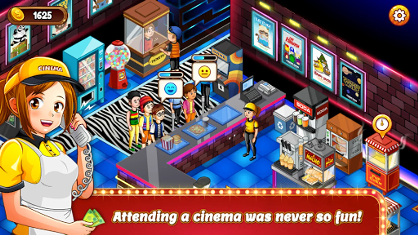 Tons of fun advancing levels and getting advanced machines, movies and decorations.