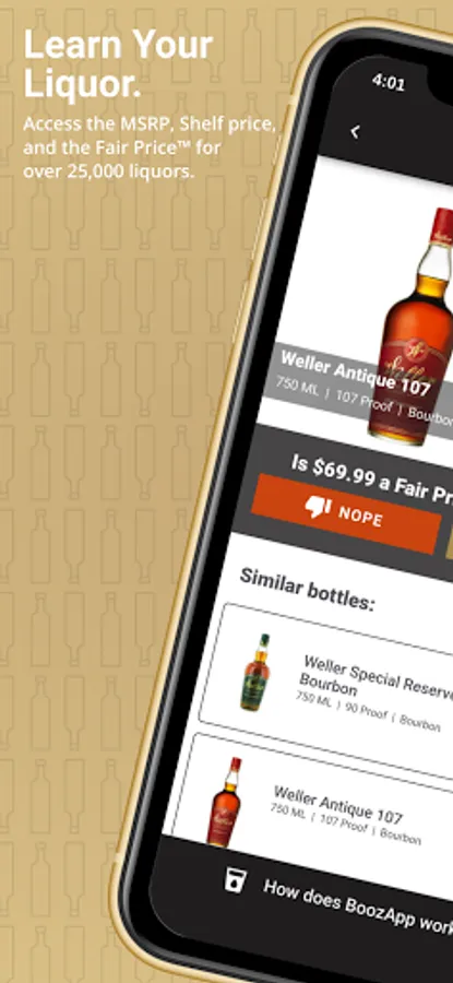 BoozApp's your bestest friend at the liquor store. Whether you're buying to drink or buying to hoard.... er, collect, BoozApp makes it easy to buy smart by showing you the price you should be paying (MSRP), the price stores want you to pay (Shelf Price), and the price the bottle's actually worth (Fair Price™)—for every single bottle of liquor on the US market. Let BoozApp make shopping for liquor like, 100x easier for you.