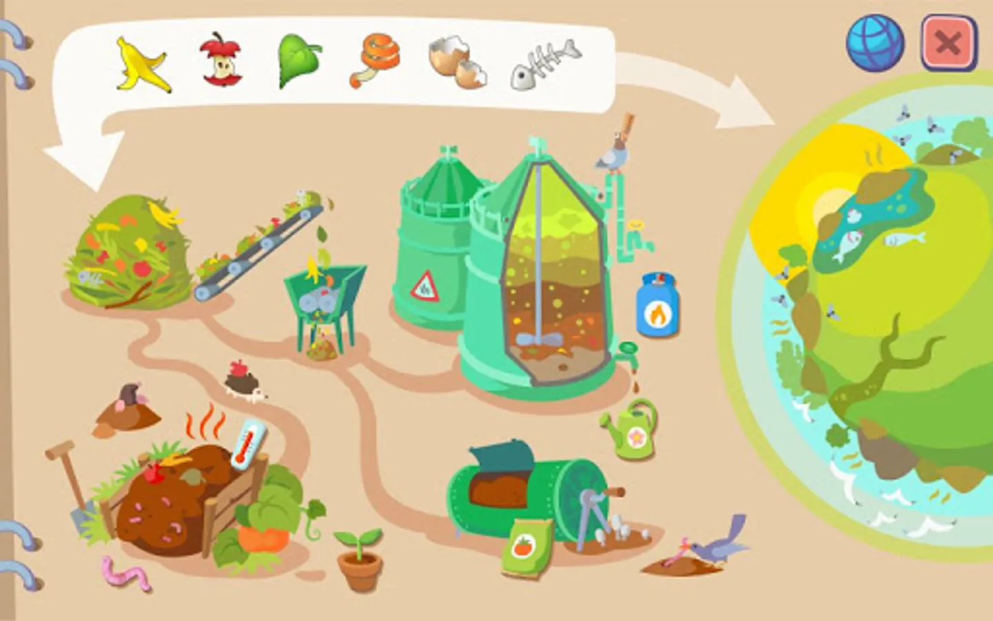 Highly entertaining recycling game for kids, which inspires to learn about recycling and environmental responsibility in a fun and engaging way.