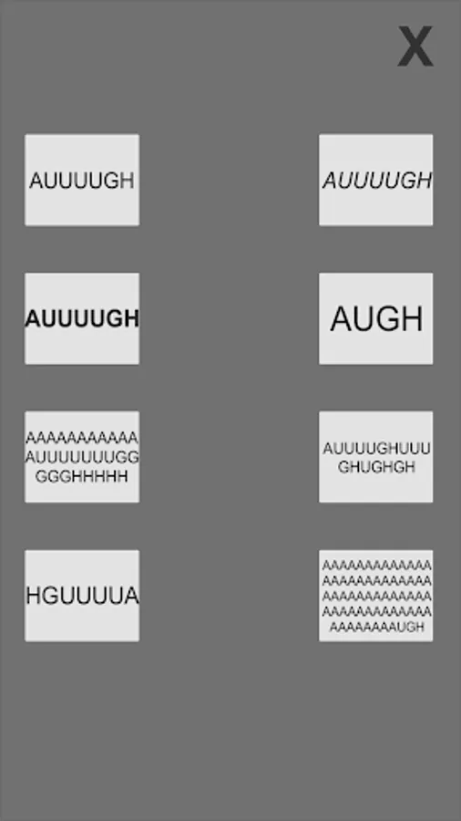 This app contains 8 variants of the AUUUGH sound you can listen and have a fun time.