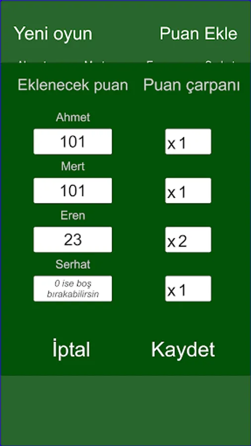 You can automatically multiply the score by entering the multiplier