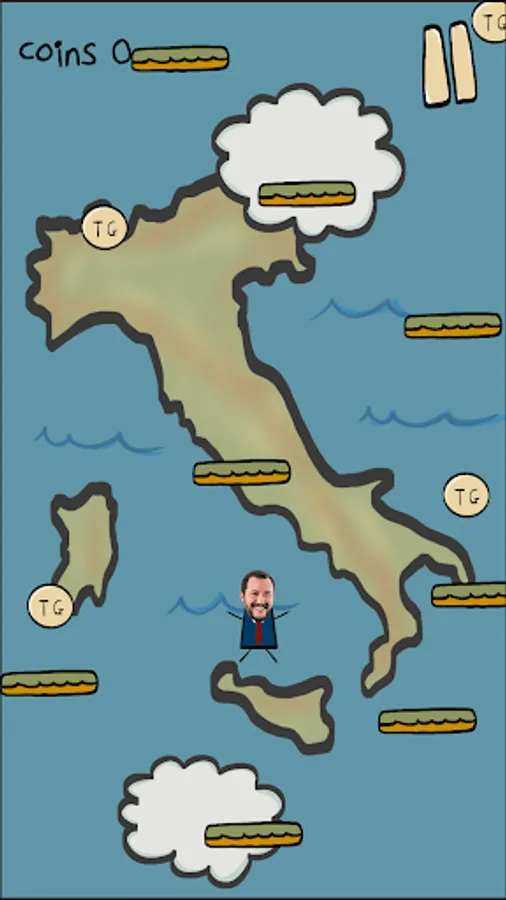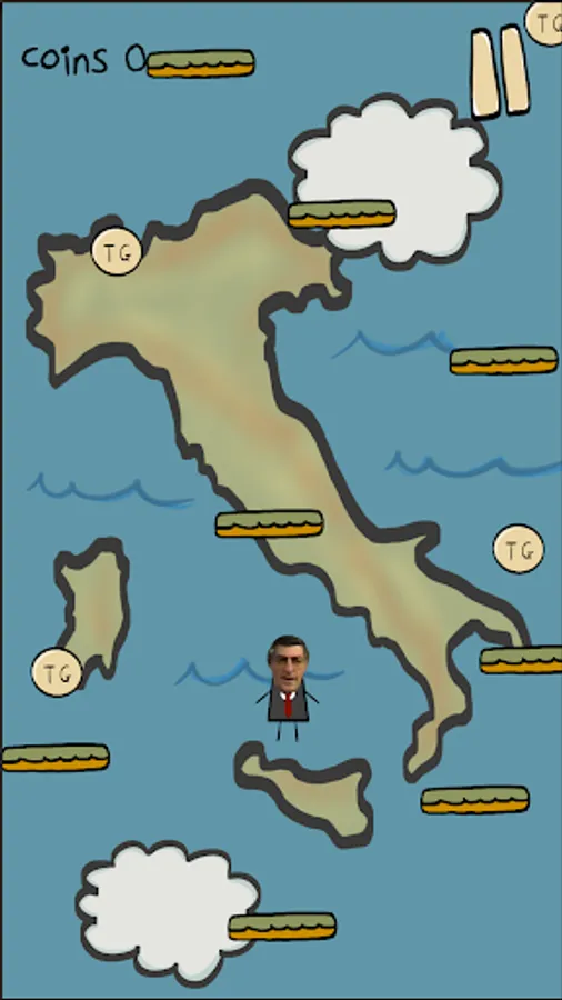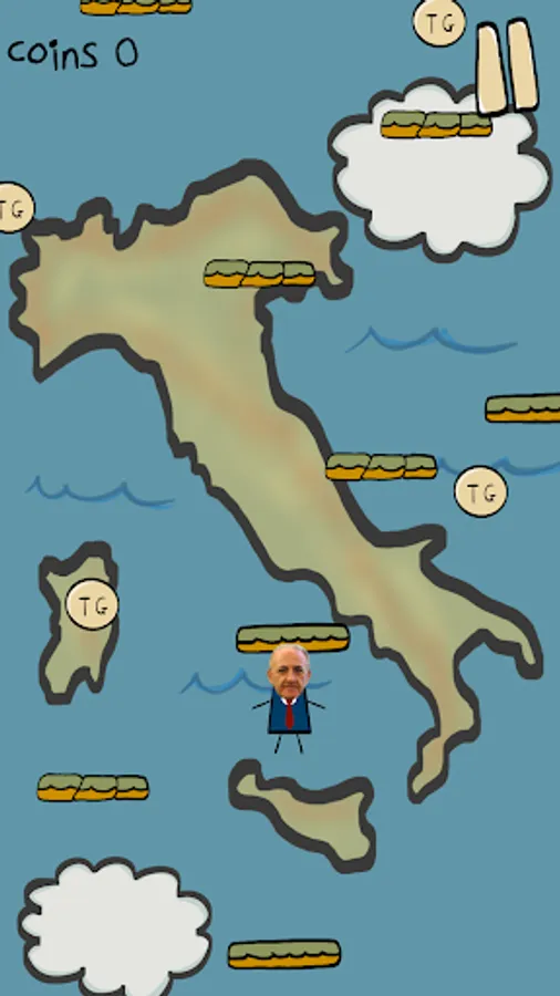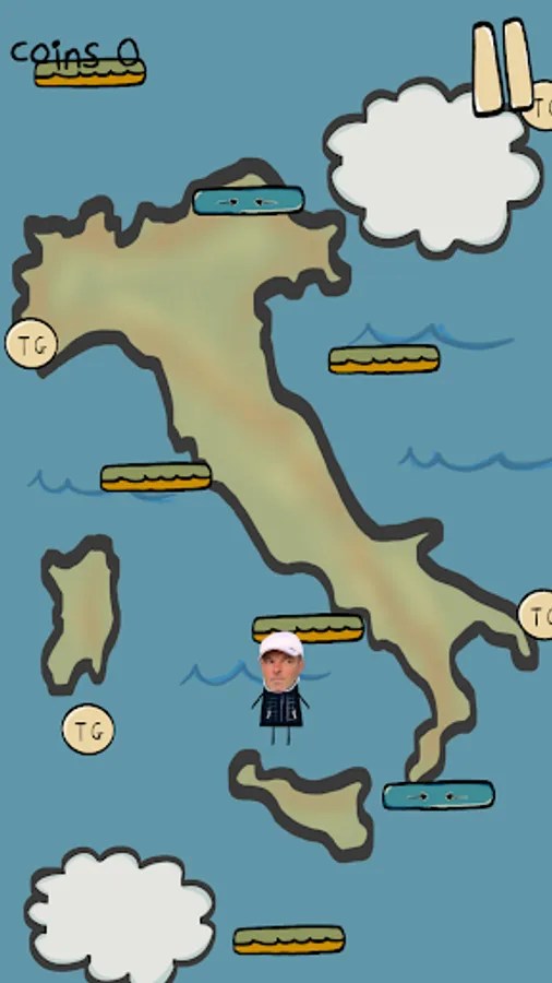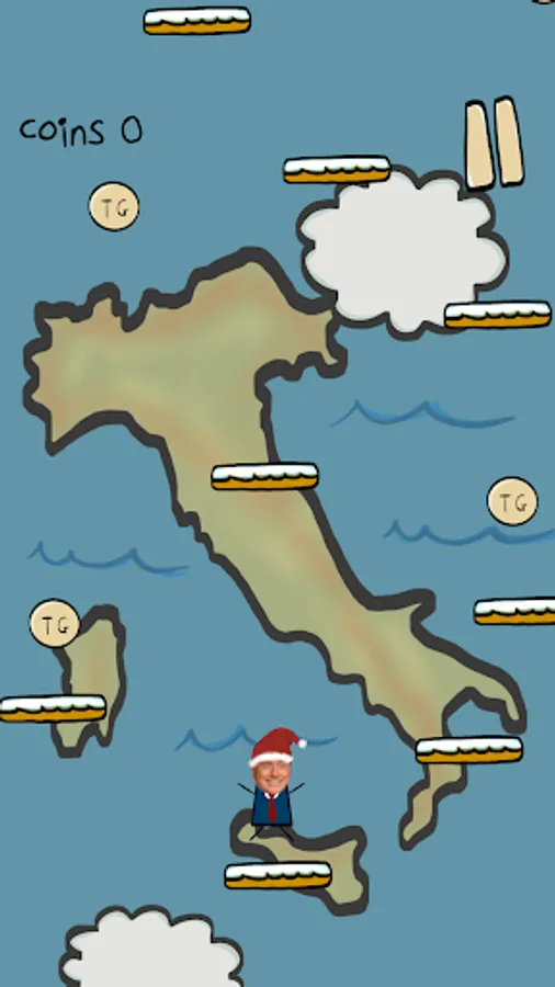 The TrashGame is a Doodle Jump style game with levels designed like Catmario, incredibly difficult. To this, we add the element of "trash", parodic, given by the characters: Conte, De Luca, Berlusconi, the legendary Lello di Bari, "Maximo two three days", etc.