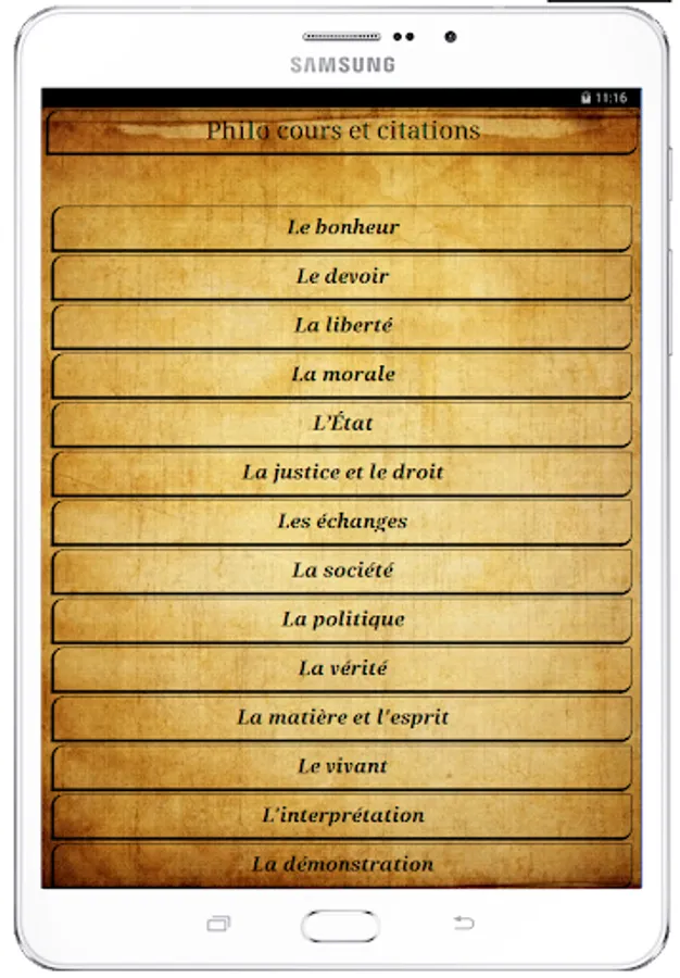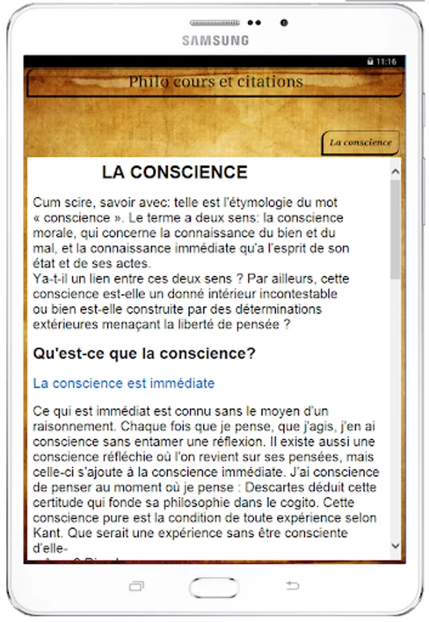 This application includes all notions of philosophy. It was designed to help pupils, students and anyone studying philosophy.