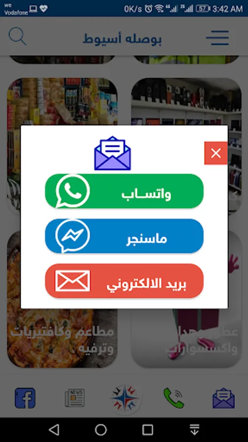 بوصله اسيوط تطبيق خاص بمحافظة اسيوط فتجد ما تحتاج اليه من البحث عن جميع اماكن الانشطة التجارية ومعرفة كافة البيانات الخاصه بكل نشاط من عنوان ورقم تليفون والاسعار والمكان موضح بالخريطة فى كافة التصنيفات حيث يحتوي على 121 تصنيف وبيانات اكثر من 5000 بيان للانشطة