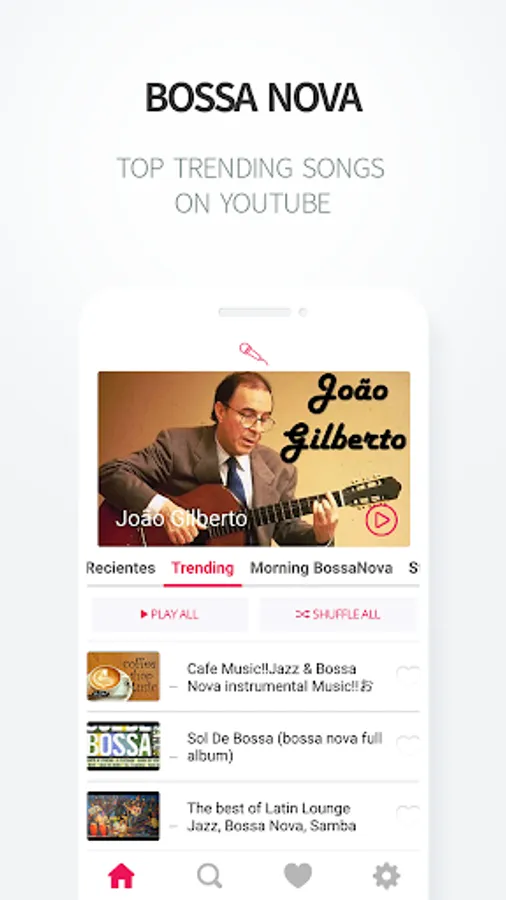 In this application, you can listen to the best Bossa Nova music, Bossa Nova instrumental and Bossa Nova songs most heard, performed in the voices of the most famous singers like: Dorival Caymmi, Joao Gilberto, Tom Jobim, Astrud Gilberto, Nara Leao, Carlos Lyra, Maysa Matarazzo, among many more. Plus, you can create your own playlist of your favorite Bossa Nova songs. Download free Bossa Nova music right now and enjoy the best Bossa Nova music of all time!
