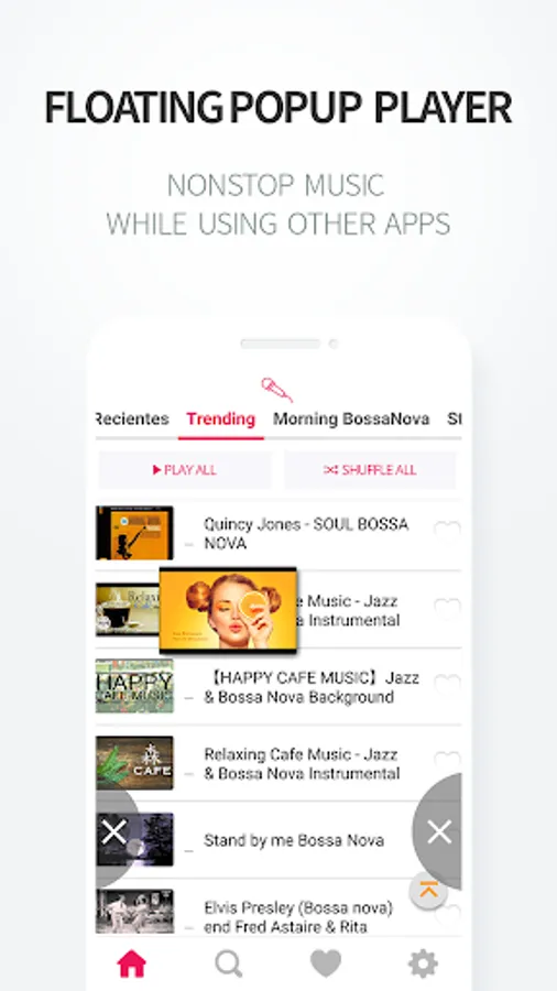 Free Bossa Nova Music is a compliant 3rd-party app that lets you play Bossa Nova music and videos from YouTube. Bossa Nova is a style of Brazilian music, which was developed and popularized in the 1950s and 1960s and is today one of the best-known Brazilian music styles abroad. Its rhythm was created by the influence of samba, blues and jazz, and the lyrical themes include women, love, longing, homesickness, nature, and the best of youth.