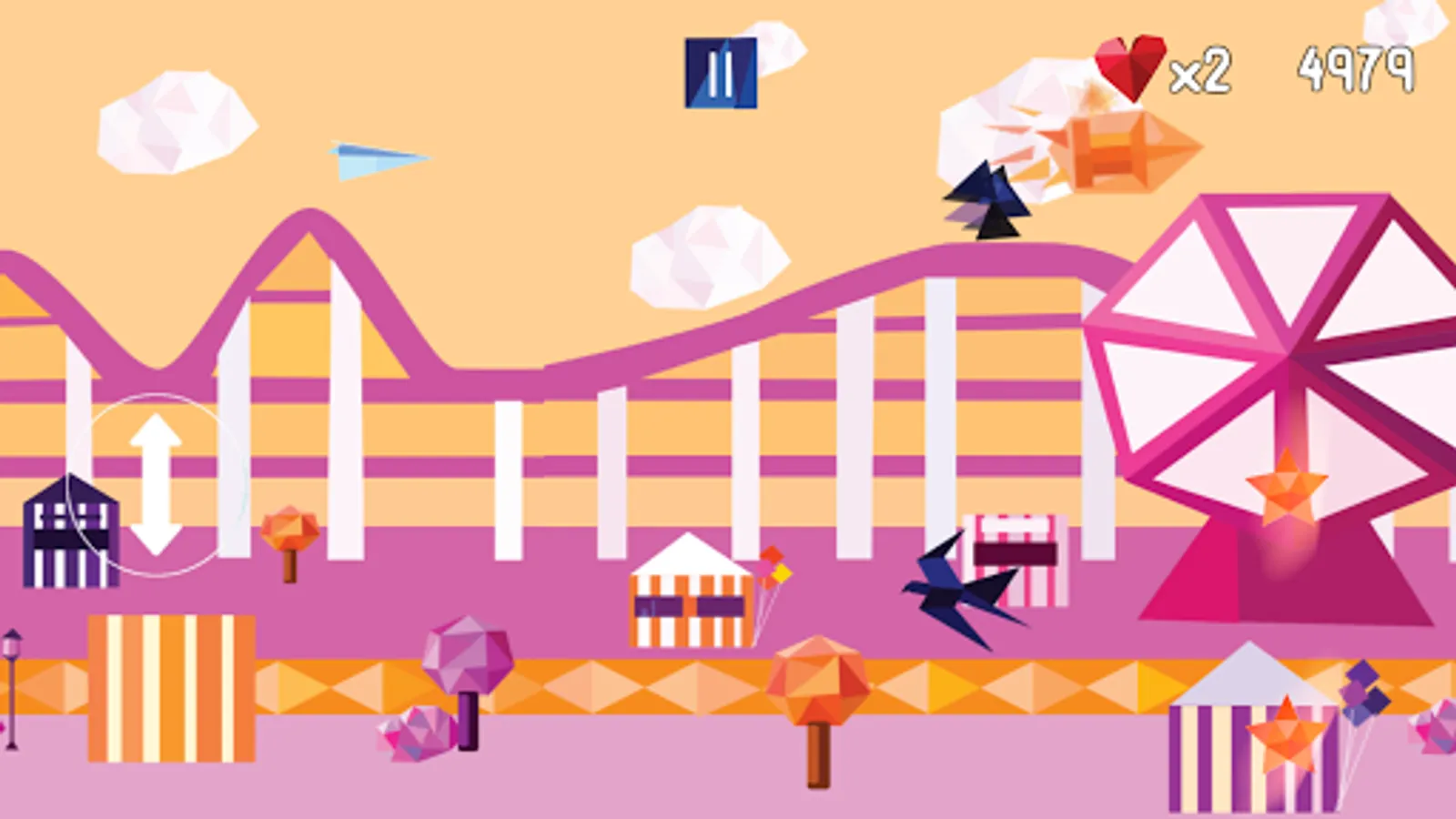 Guide your paper airplane to the end of 3 different levels. Fire tacks to fight off oncoming waves of birds.