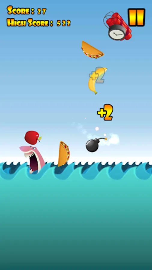 Simple yet challenging game. Play as Chomp Chomp the Shark and help him eat as much food as possible falling from the sky! But avoid the bombs, they won't taste good! Very simple controls, just tap to switch Chomp Chomp's direction! Play as Chomp Chomp, or Chompette! Incredible musical score that changes as you play!