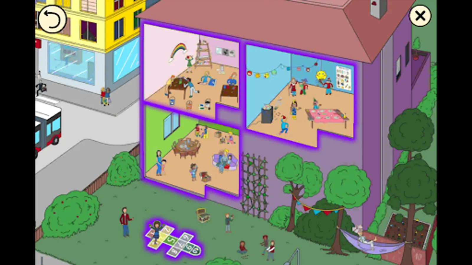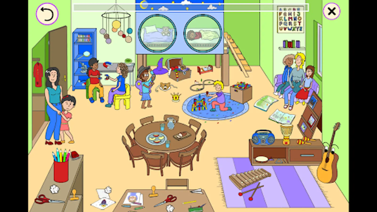 The colorful world of Ilwa Immerfroh, with a total of 20 areas and many different clickable objects and sound effects, is waiting to be discovered. The children visit the petting zoo and the circus. Get to know the different food departments in the supermarket or have a party in the kindergarten. And at the same time, they expand their vocabulary and practice grammatical structures.