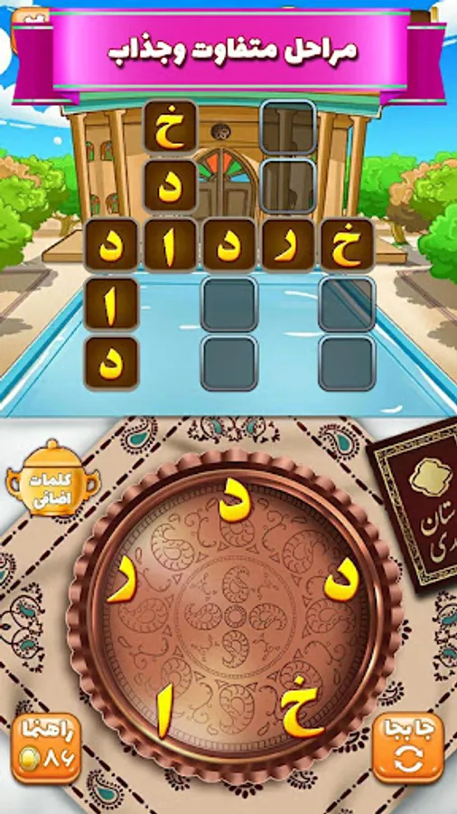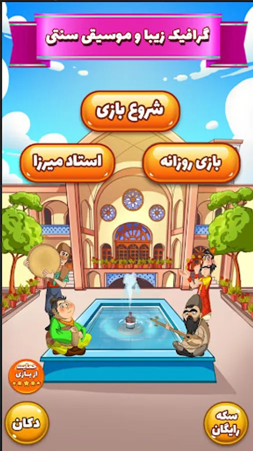 Amirza is a different, fun and extremely attractive word game that invites you to a big and sweet challenge. The goal of the game is to find the desired words among the jumbled letters. In the meantime, you have to test your intelligence and intelligence among the elders and mirzas of the word field and increase your credibility, from Mirza Delak Meshtamalian to Mirza Alam Khormand. And all will be tough rivals for you. This game has more than 1000 different stages with dozens of funny Iranian characters, attractive animations, authentic traditional music, spectacular graphics, memorable and native environments, and will entertain you for hundreds of hours.