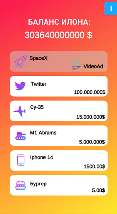 A game, a simulator in which you have to spend Elon Musk's money.