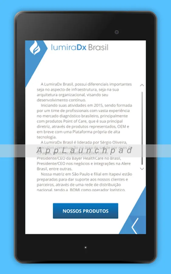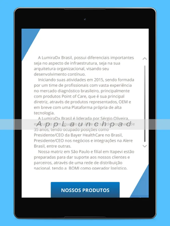 Nosso aplicativo demonstra o nosso portfólio de produtos para auxiliar os nossos clientes.