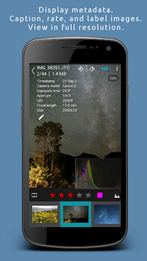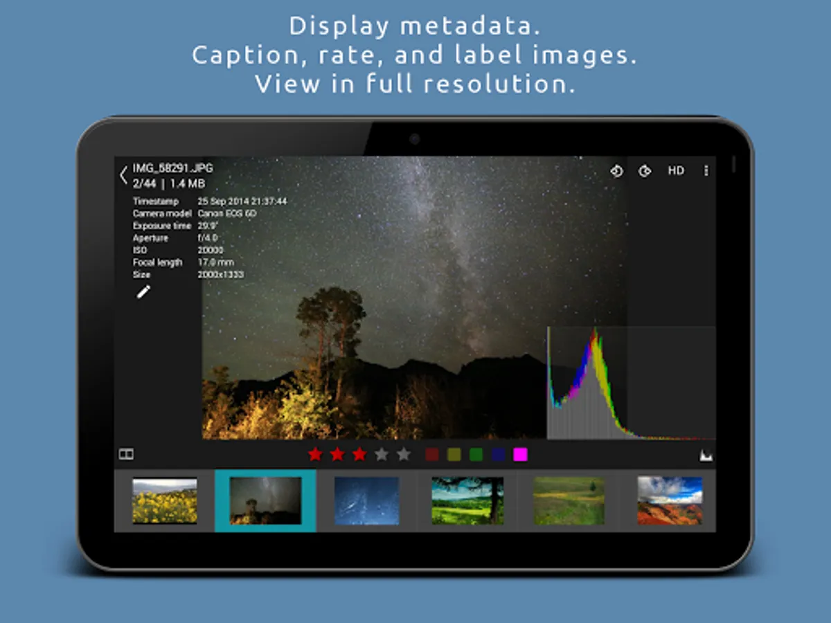Sort and organize your image library. Portfolio offers powerful photo organizing capabilities. Read the EXIF data, edit the metadata, and view the histograms of your photo library. Upgrade to the full version for full RAW support (e.g. CR2 and NEF among others).