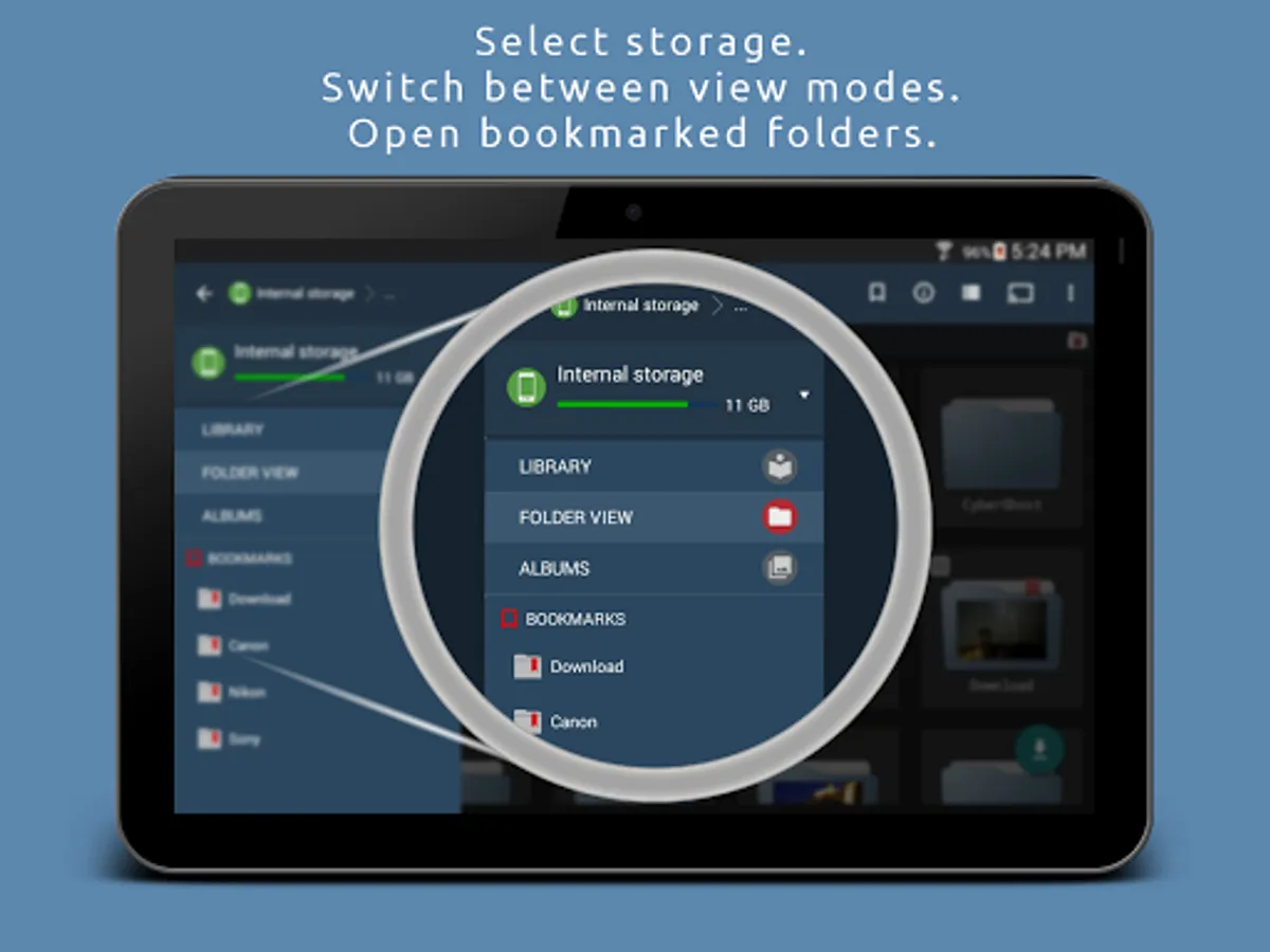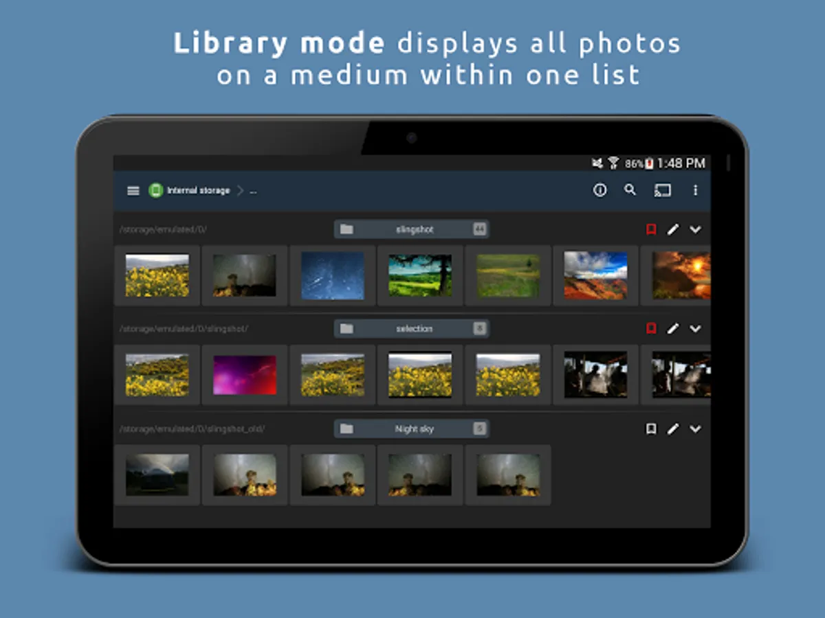 Portfolio RAW Photo Manager is a powerful and lightning fast photo organizer. It offers two viewing modes: Library and Folder. Library view allows viewing all photos on a certain storage location within one list sorted by their directory. Folder view is a traditional folder based viewing mode.