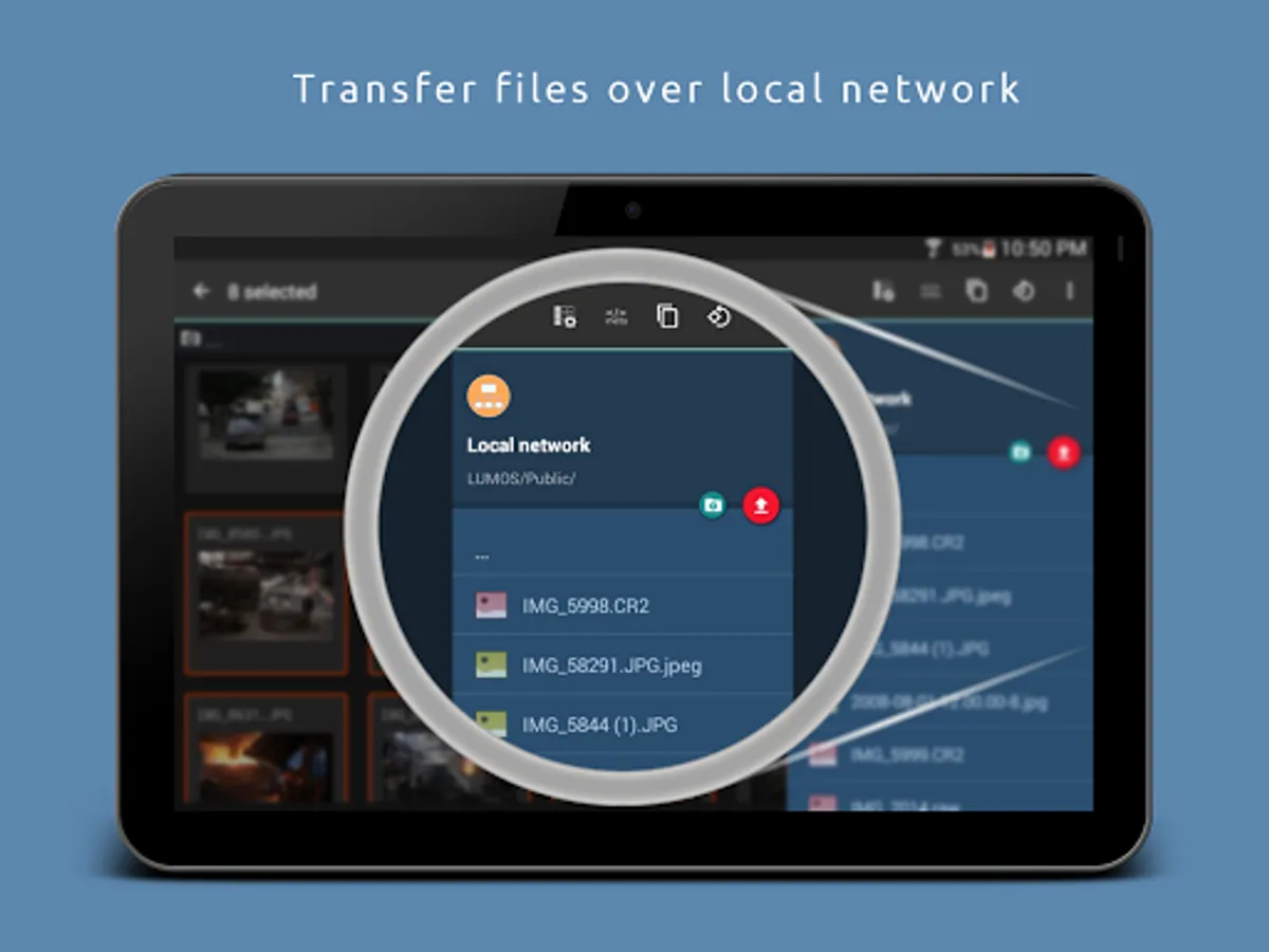• Search, filter, and organize content by folder/file name, rating, caption, and tags.