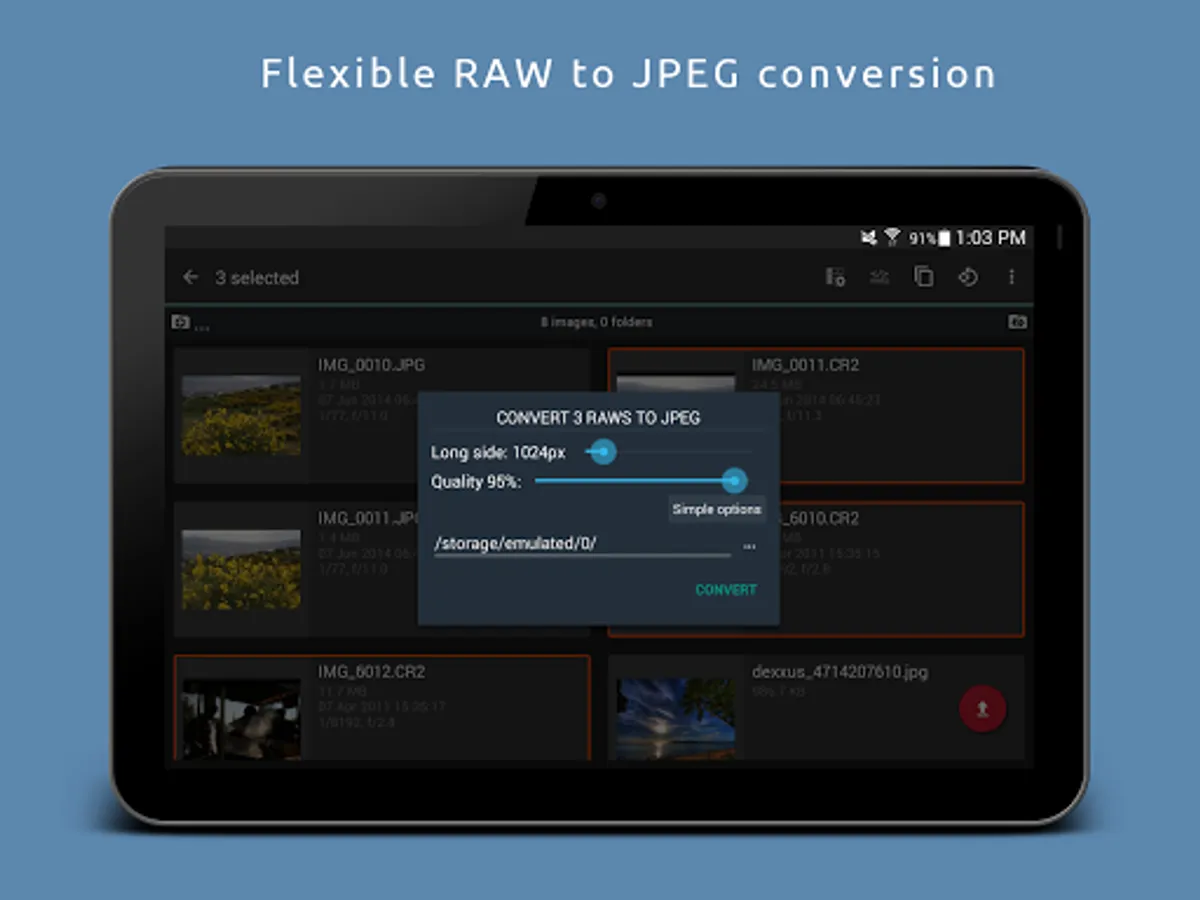 • Read RAW format for majority of cameras (available through in-app purchase).