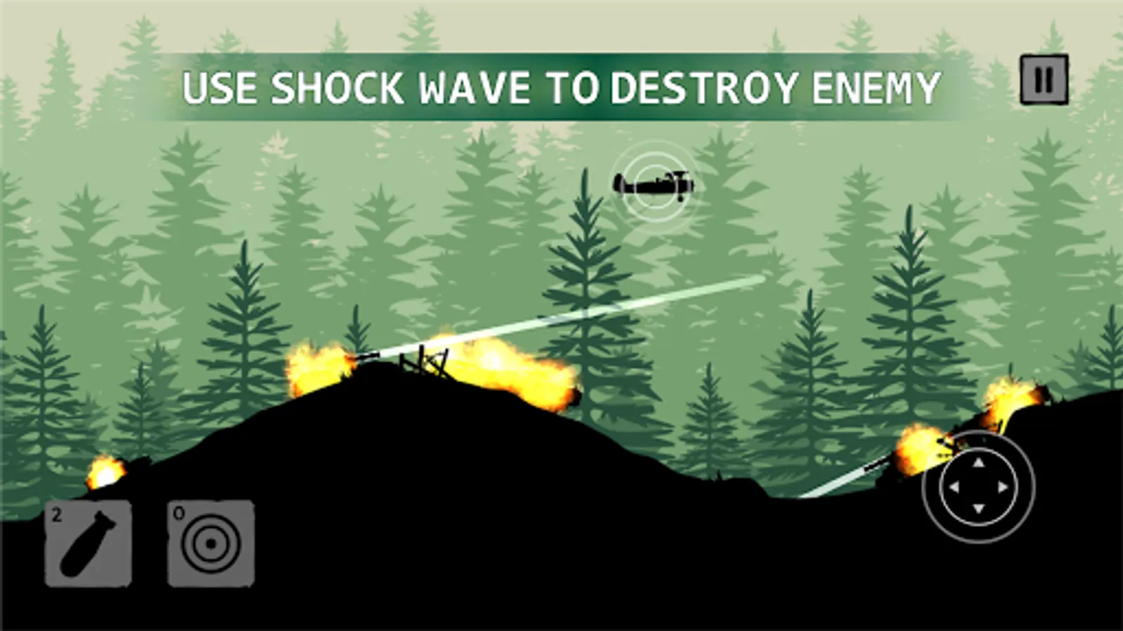 Fly planes over challenging terrains and destroy enemies . Unlock new planes by reaching higher levels .