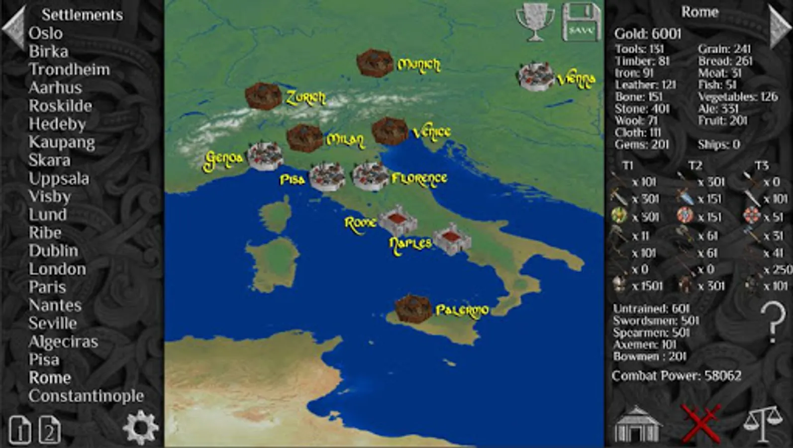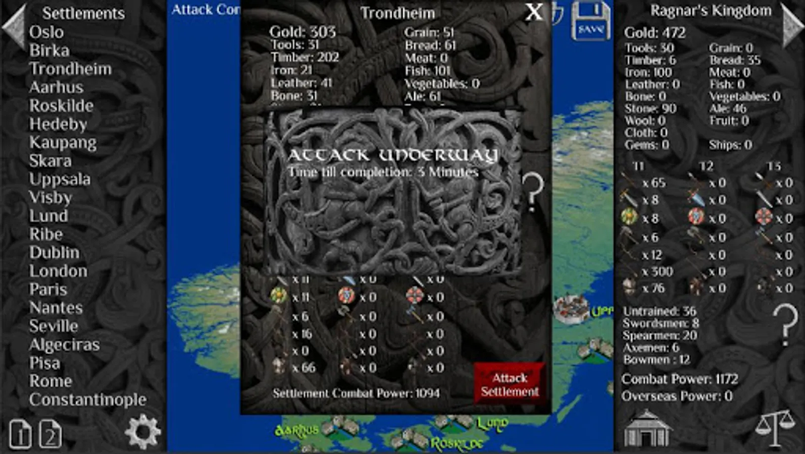 Or, gather a grand heathen army and build dozens of ships to lay siege to the far away city of Rome or Constantinople. All cities can be taken as your own.
