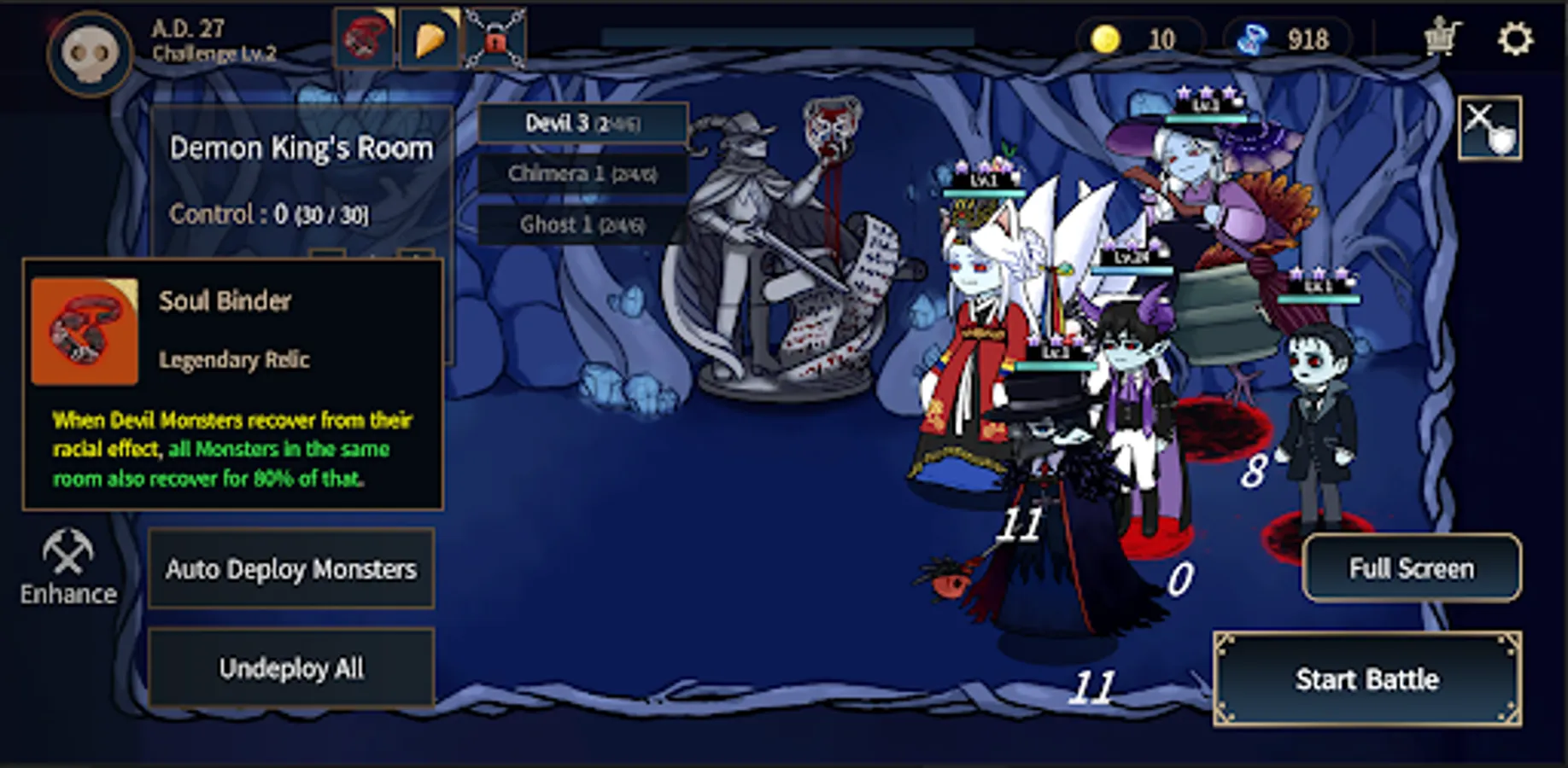 Have your Demon King consume monsters to raise his stats,