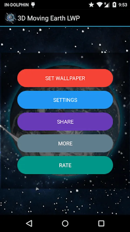 Find multiple settings in each single setting option of 3D Moving Earth live wall paper. The 3D image of the Earth, comets and stars is definitely the most realistic one. The color texture movement and display of the earth has plenty of option to choose from.