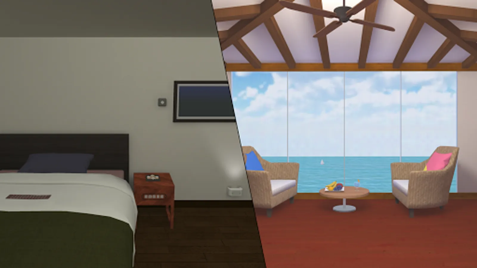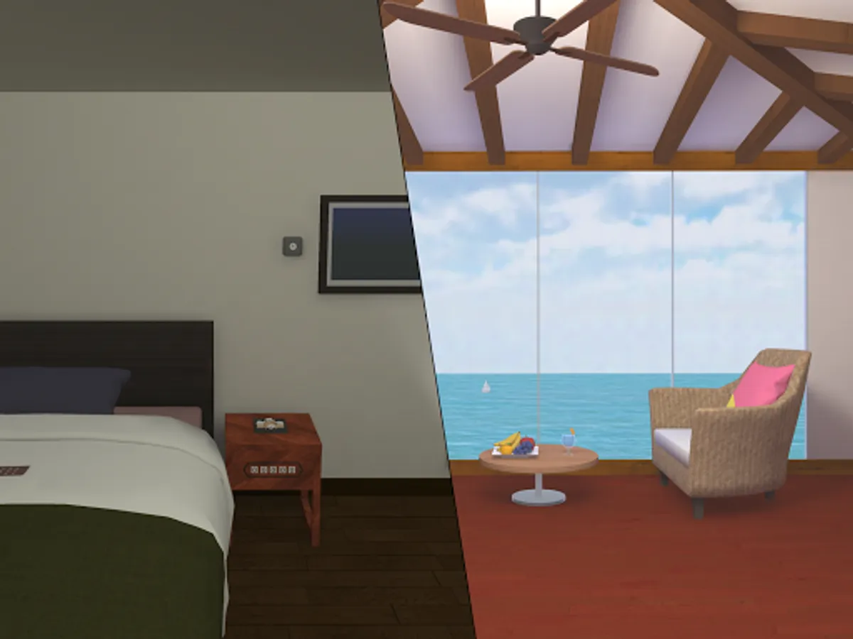 ・ Tap the arrow at the bottom of the screen to move the room