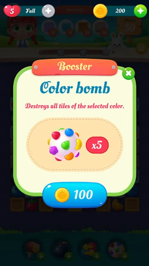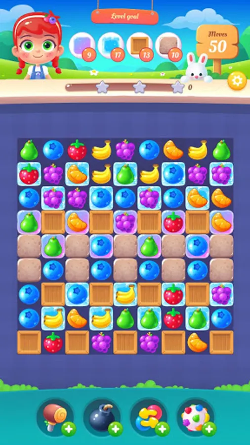 Enjoy a simple game, collecting fruits during a beautiful journey, throughout multiple levels. It's very simple: connect 3 or more fruits of the same type. You can connect them in all directions (even diagonally!).