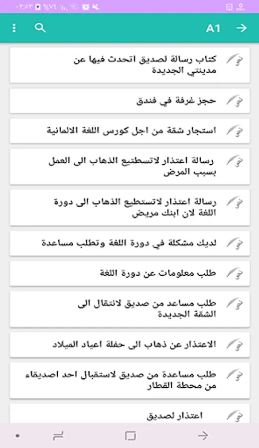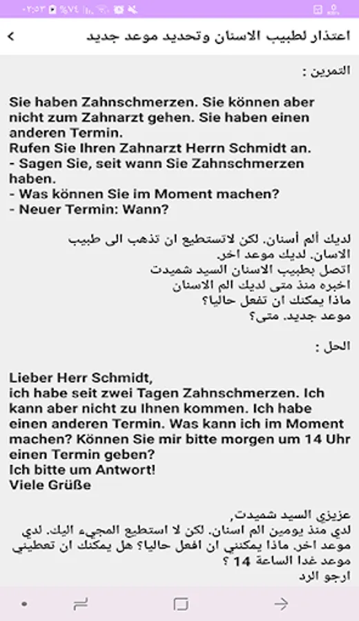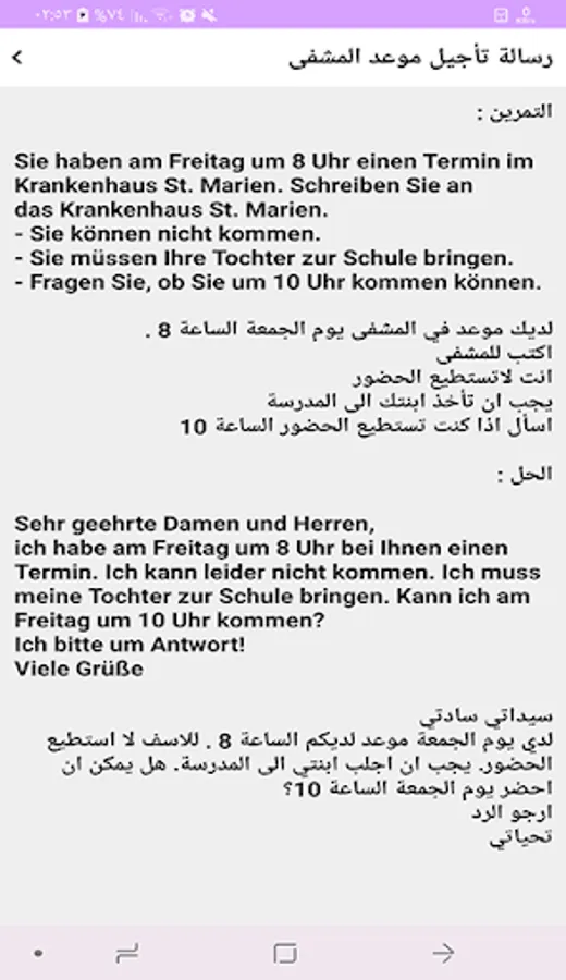The letters include the required points with their translation into Arabic, as well as a book of topics and letters in German