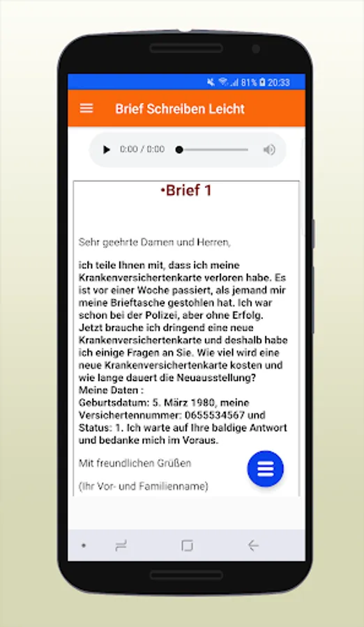 You can also learn German with this app level A1 A2 B1 B2. You write a letter simply and correctly with this app write for exam certificate German A1