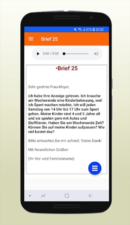 The right exam for you, if you already have basic knowledge of German. You use the right app for letter or e-mail writing to level A1 A2 B1 B2