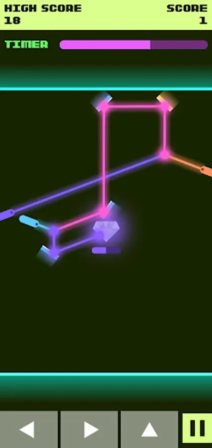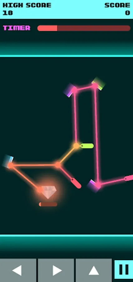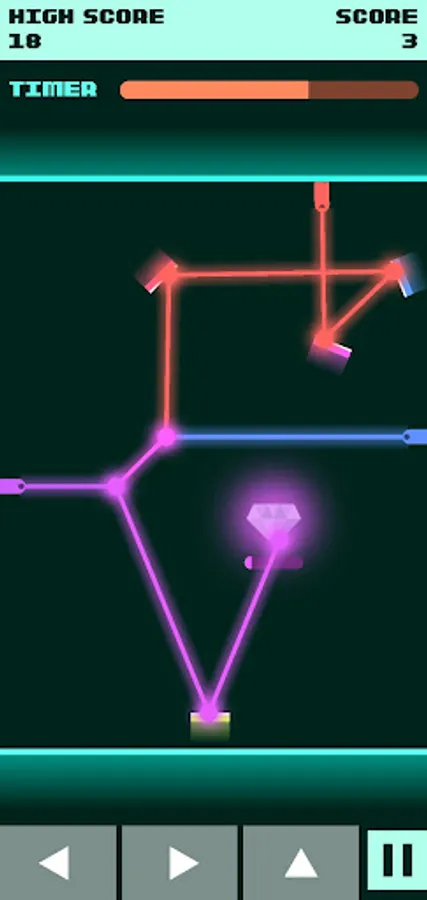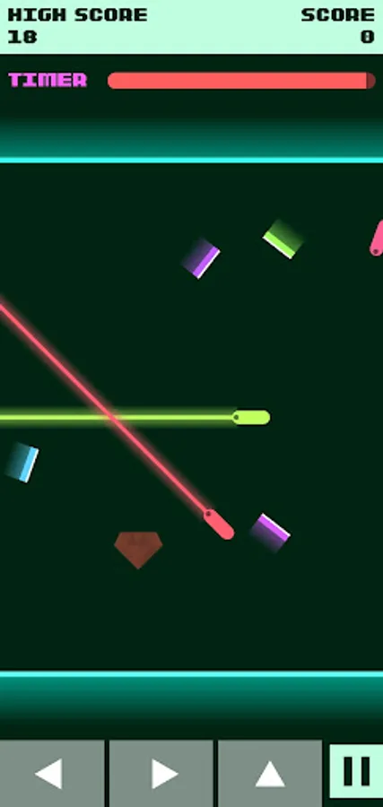 The goal is to hit the target (diamond) for a while by hitting the laser ray onto all available mirrors and lasers in the arena. Complete as many levels as you can.