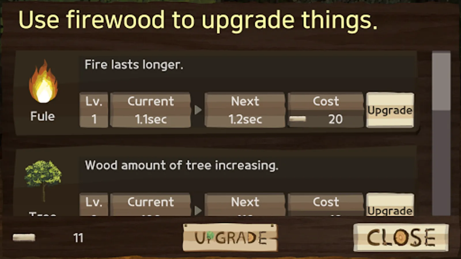 - Tab tree to gather firewood, and tab fire to maintain it.