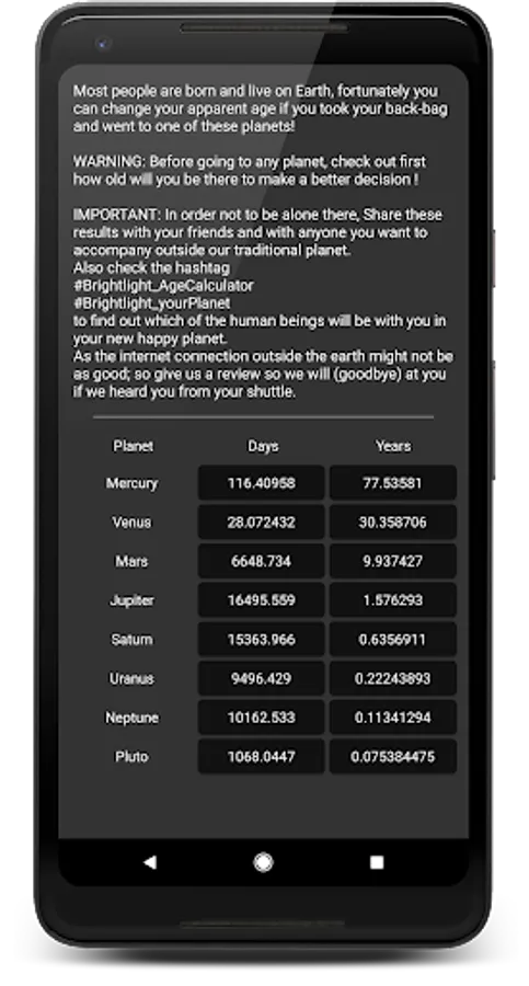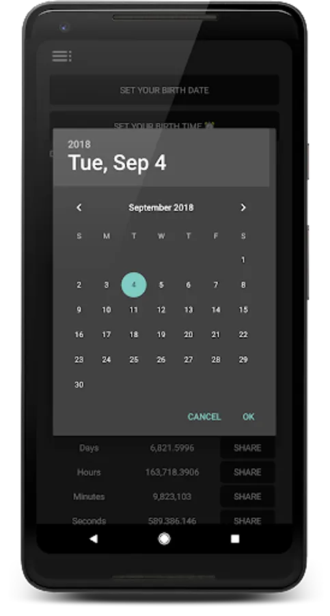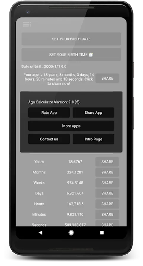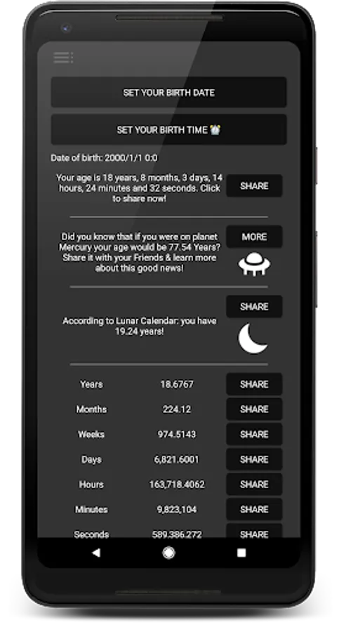 What you have to do is only selecting your birth date, pressing the button and you'll see your age in details.