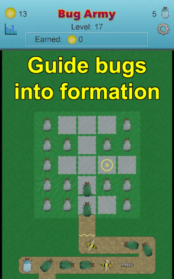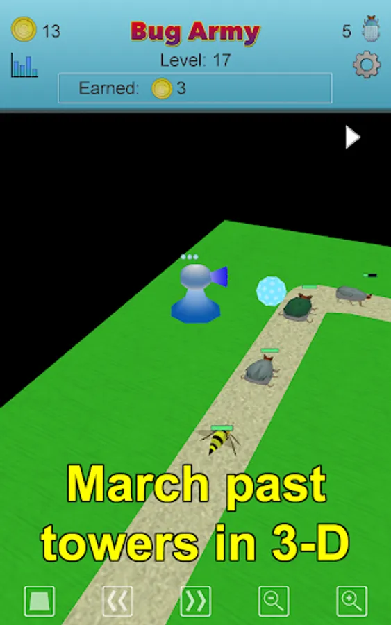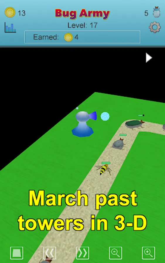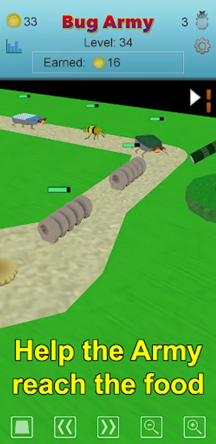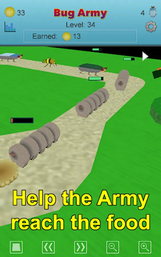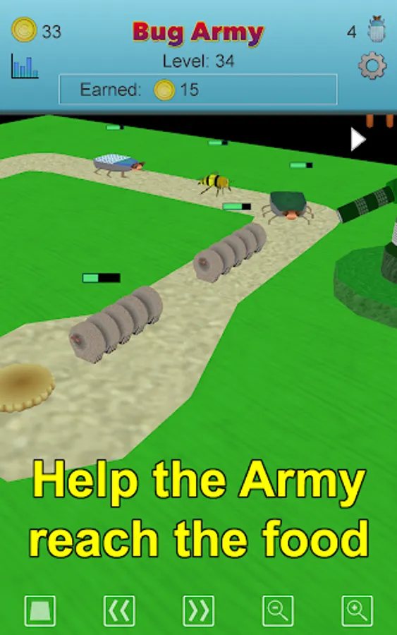 The tower defense part of each level operates automatically. Change the camera angle to watch your Bug Army reach the food.