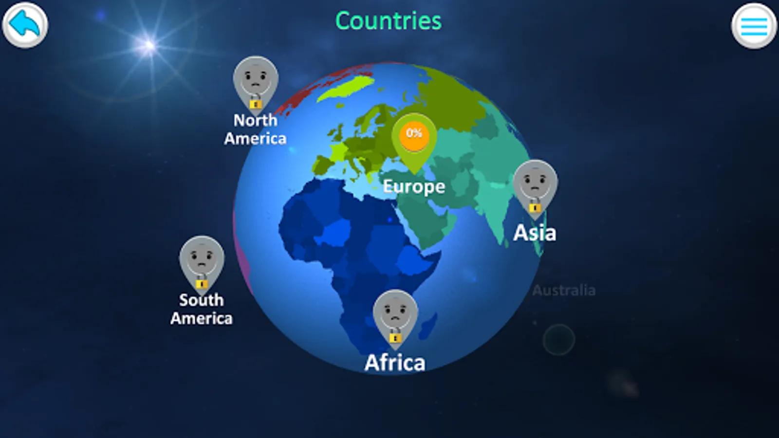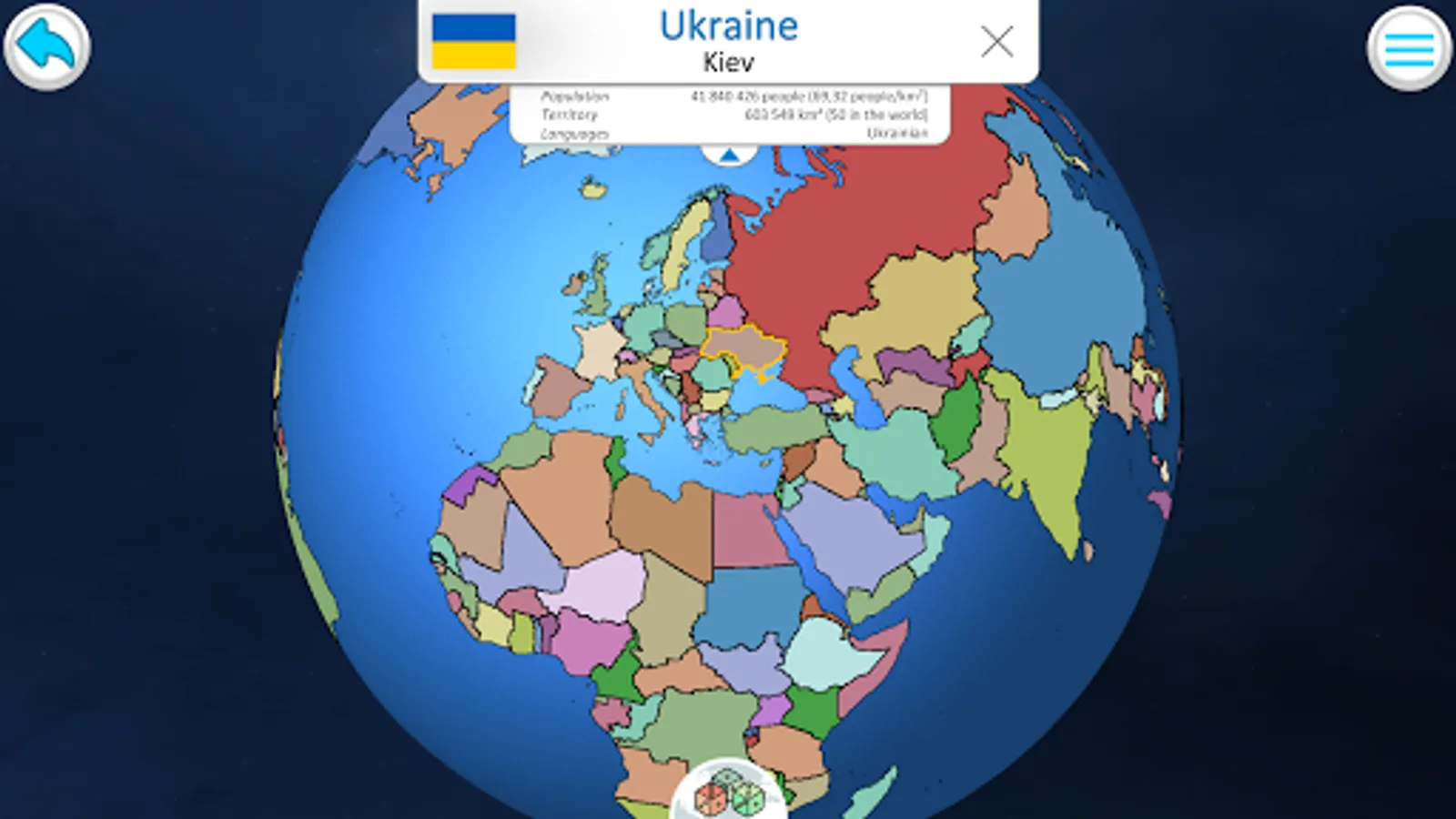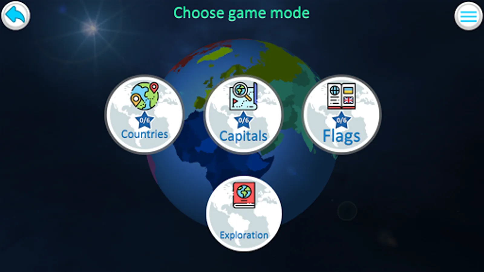 Game allows you to study the position of countries on the map, their capitals names, the appearance of flags. Exploration mode helps you find interesting information about the population of each country, territory, position in the world and more.