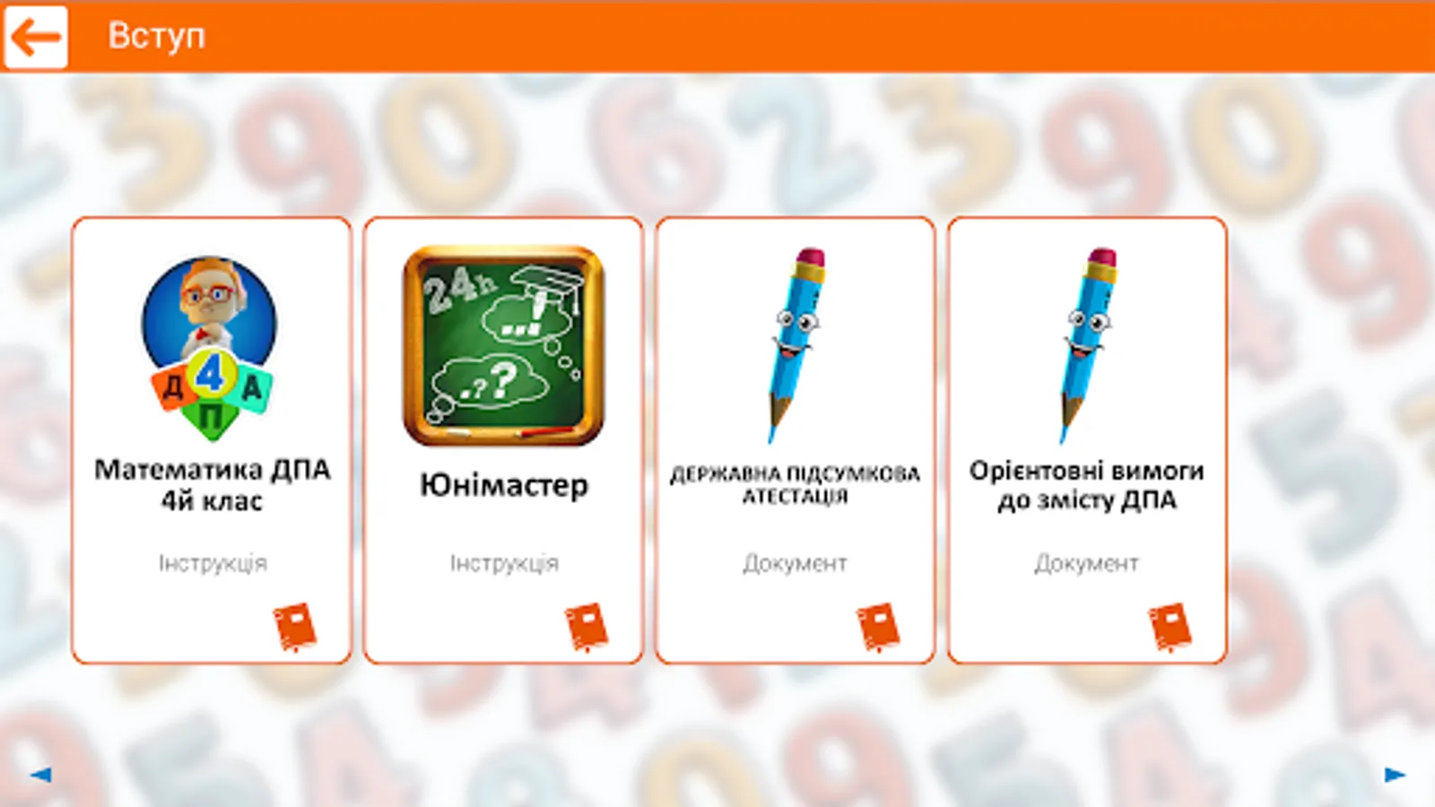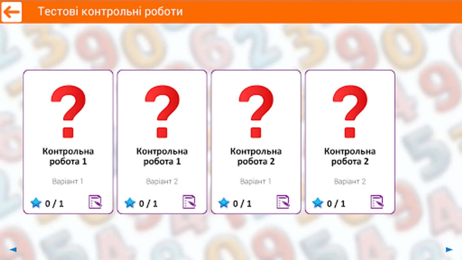 The application includes a set of tests to prepare for the STA, created on the basis of a program in mathematics grades 1-4. Each test task consists of a series of questions, each of which has 4 possible answers, only one of which is correct. After completing the survey you will be able to see your result. For the correct answers to all the questions of the test you will receive a reward - a star of experience in mathematics. When re-taking the test, the answer selected in the previous time will be highlighted.