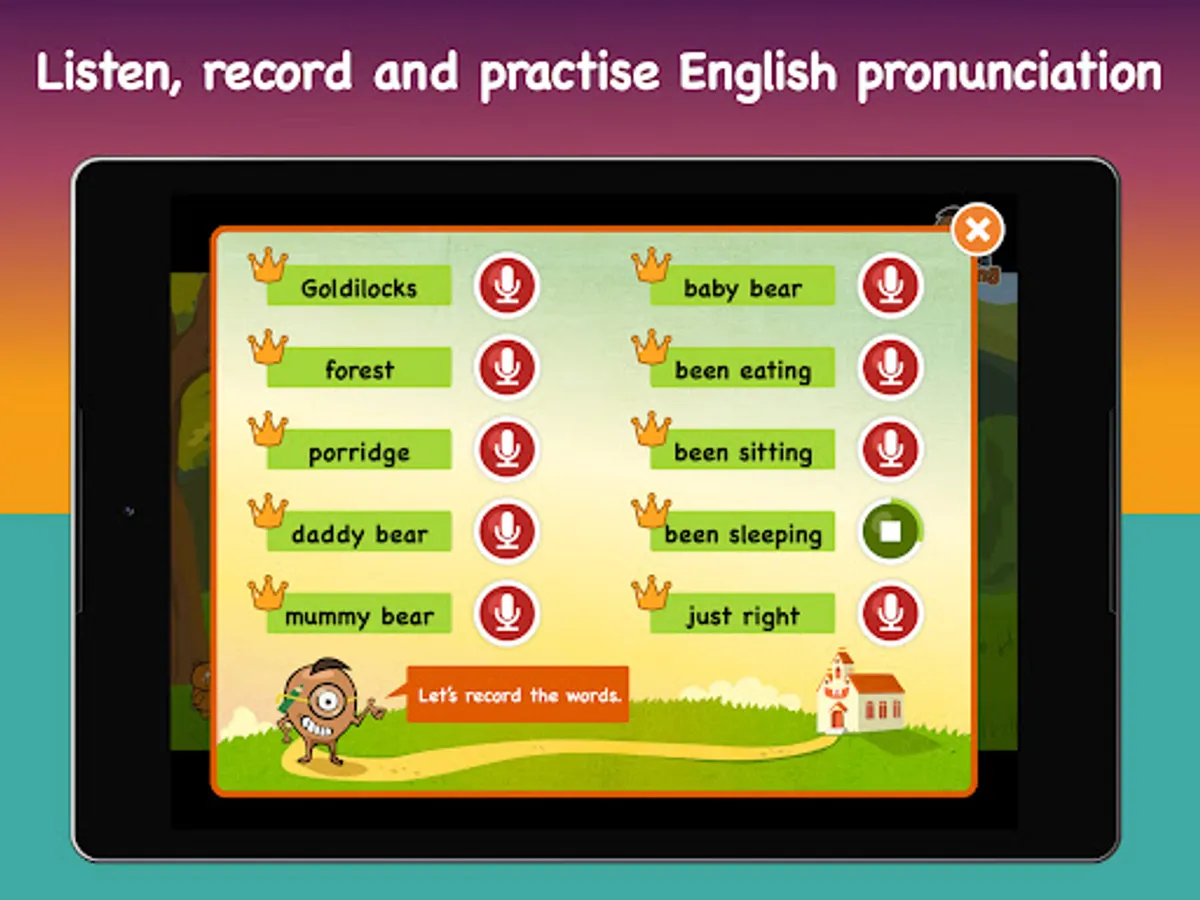 Each animated video comes with an engaging listen-and-record activity that encourages your child to say and repeat the words from the video, building confidence in speaking over time. Children can listen to the narrator, record themselves and compare their pronunciation with the narrator’s.
