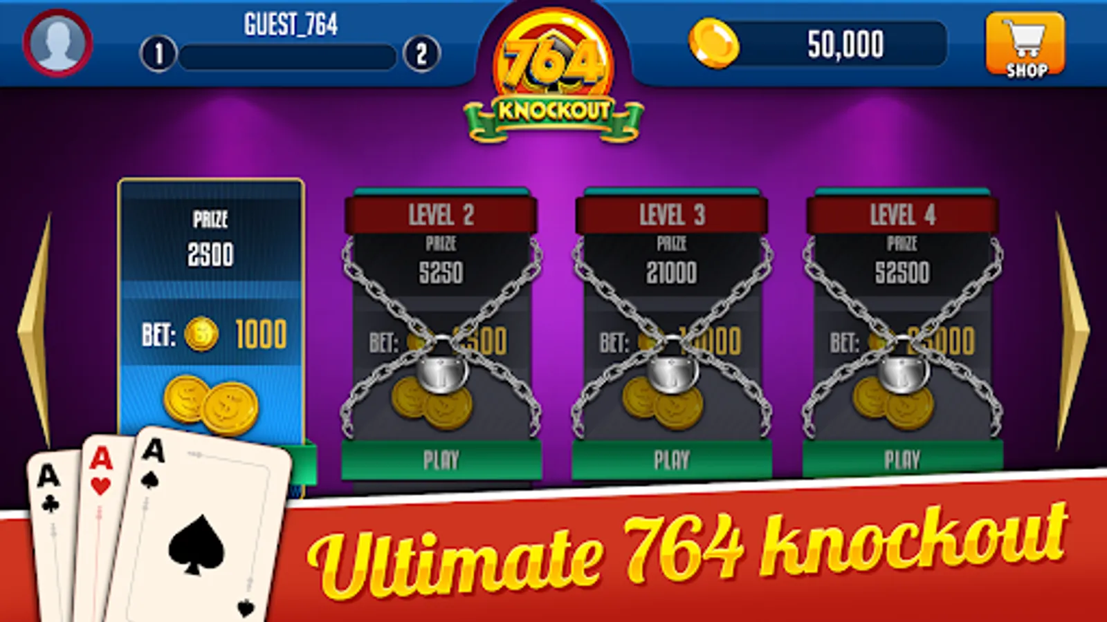 764 is much like the classic game of spades just with a twist. There are only 3 players. Each player will have a set bid of 7, 6, or 4 which rotates each hand. The player whose bid is set to 7 will choose the trump card, we call this the hot suit. That’s right spades are not the only trump card if you have a better hand with Diamonds as your trump card then you get to set that as your hot suit.