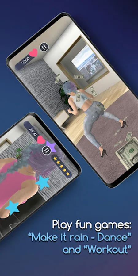 - Play fun games with her, including "Make it rain - Dance", "Workout" and "Tic-Tac-Toe" while earning hearts