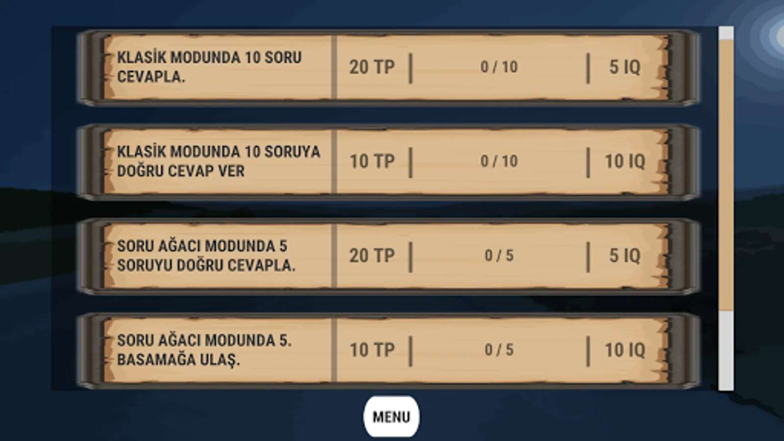 With the Question Tree mode, we challenge you to how fast you can use your brain. Can you reach the top of the tree? Let's start then.