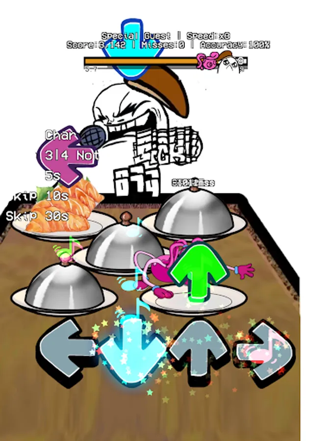 This night, not just rap battle, we serve plenty of funkin foods for our dearest friends (like Suicide Mouse, BF, GF,...). Especially on each Wednesday night, there is a funkin infidelity event with the host - Mukbang, who always has a big dream for cuisine stuff, willing to punish anyone deserves to. Besides, Boyfriend and Girlfriend will burn your funkin night with hundred FNF catchy rhythms in rap battles.