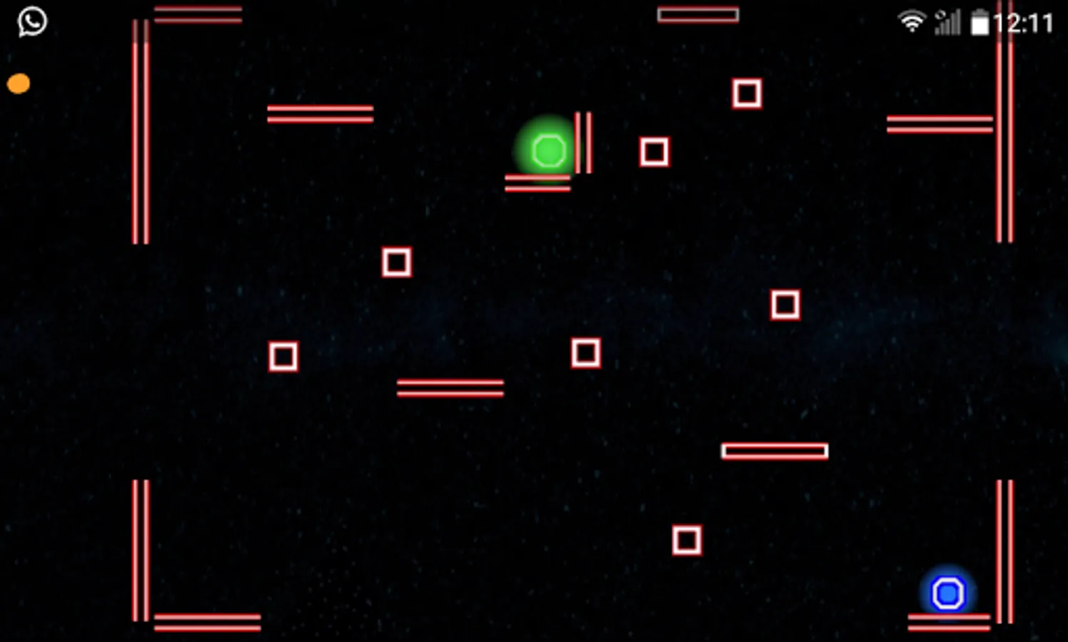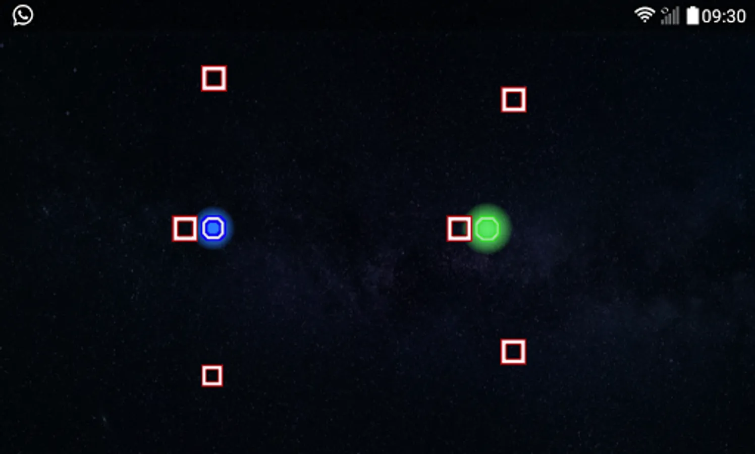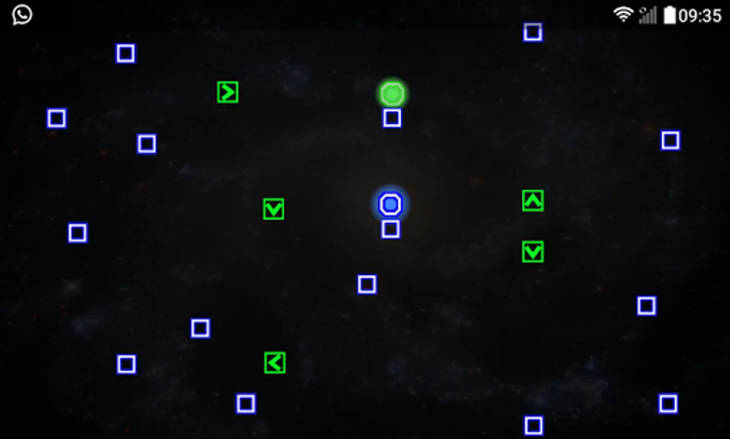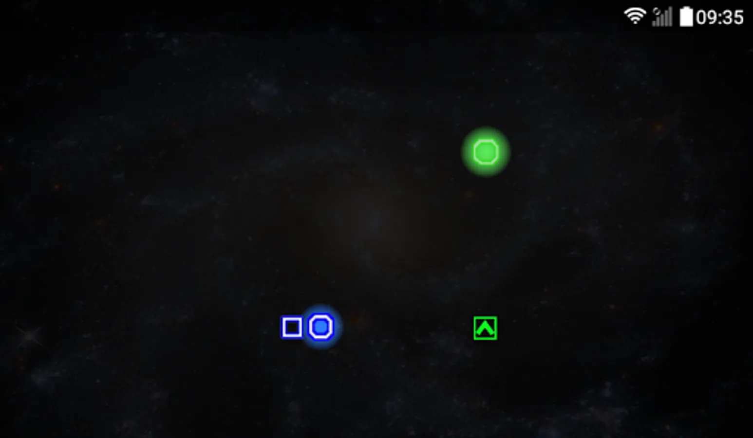 touch the blue figure (octagon) and drag in the desired direction until you find the path to the green figure. After starting the movement, you can only apply another direction after stopping, so analyze the moves.