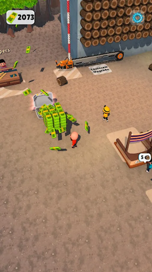 Get on your saw machine to start cutting the wood. Once the wood has been chopped, bring it to the customers patiently waiting for their supply. Customers pay you handsomely for the wood supplied. Increase your land area and become the richest man in town by taking over the wood business.