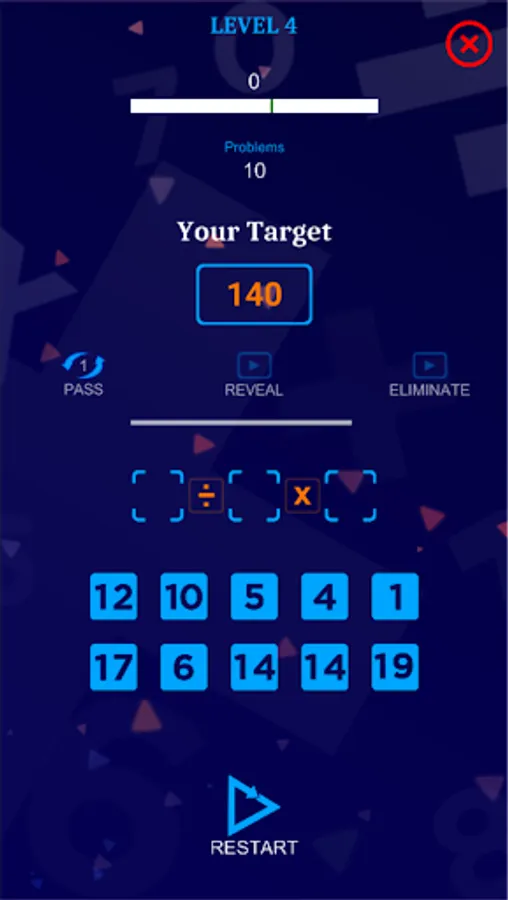 A math puzzle game all about Arithmetic. The game is designed to help you hone your arithmetic skills. You have limited time to figure out the correct arithmetic expression for the target solution you are given. learn to think fast and perform mental calculations while drawing on every trick you have on addition, multiplication, division, and subtraction.