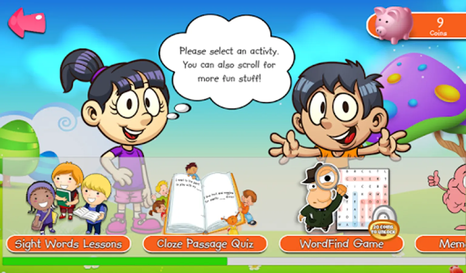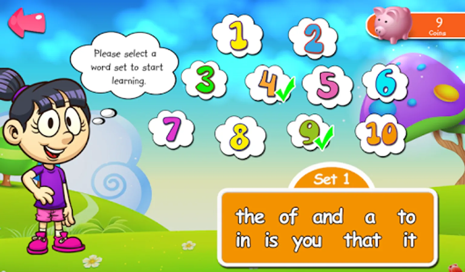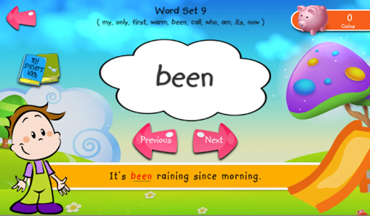 - Complete each set of word list to earn virtual coins and stickers.