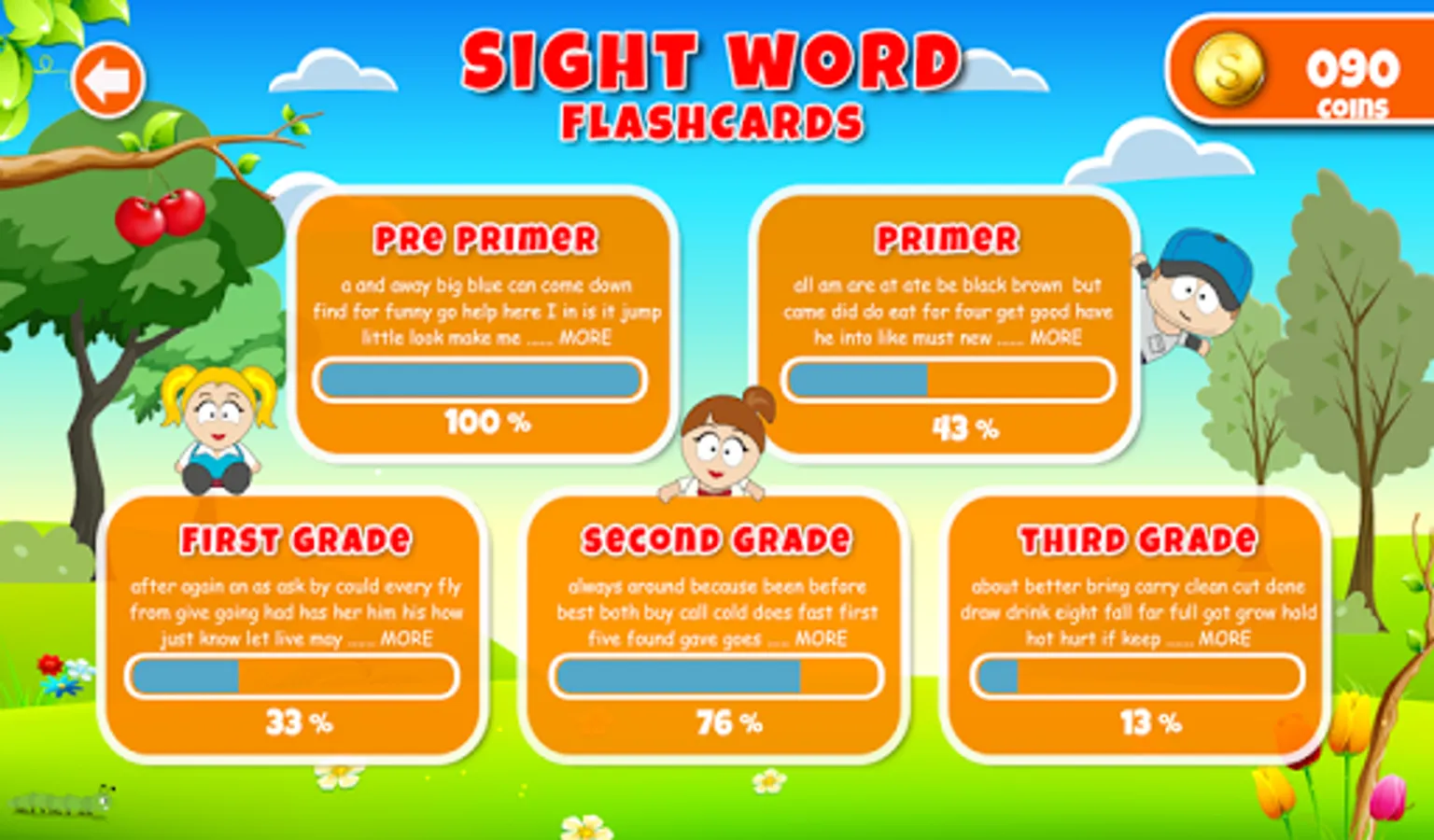 200 Plus Sight Words app contains over 200 sight words, grouped into 5 grades; Pre-primer, Primer, First Grade, Second Grade and Third Grade, and a reward system to encourage your child to reach their goal.
