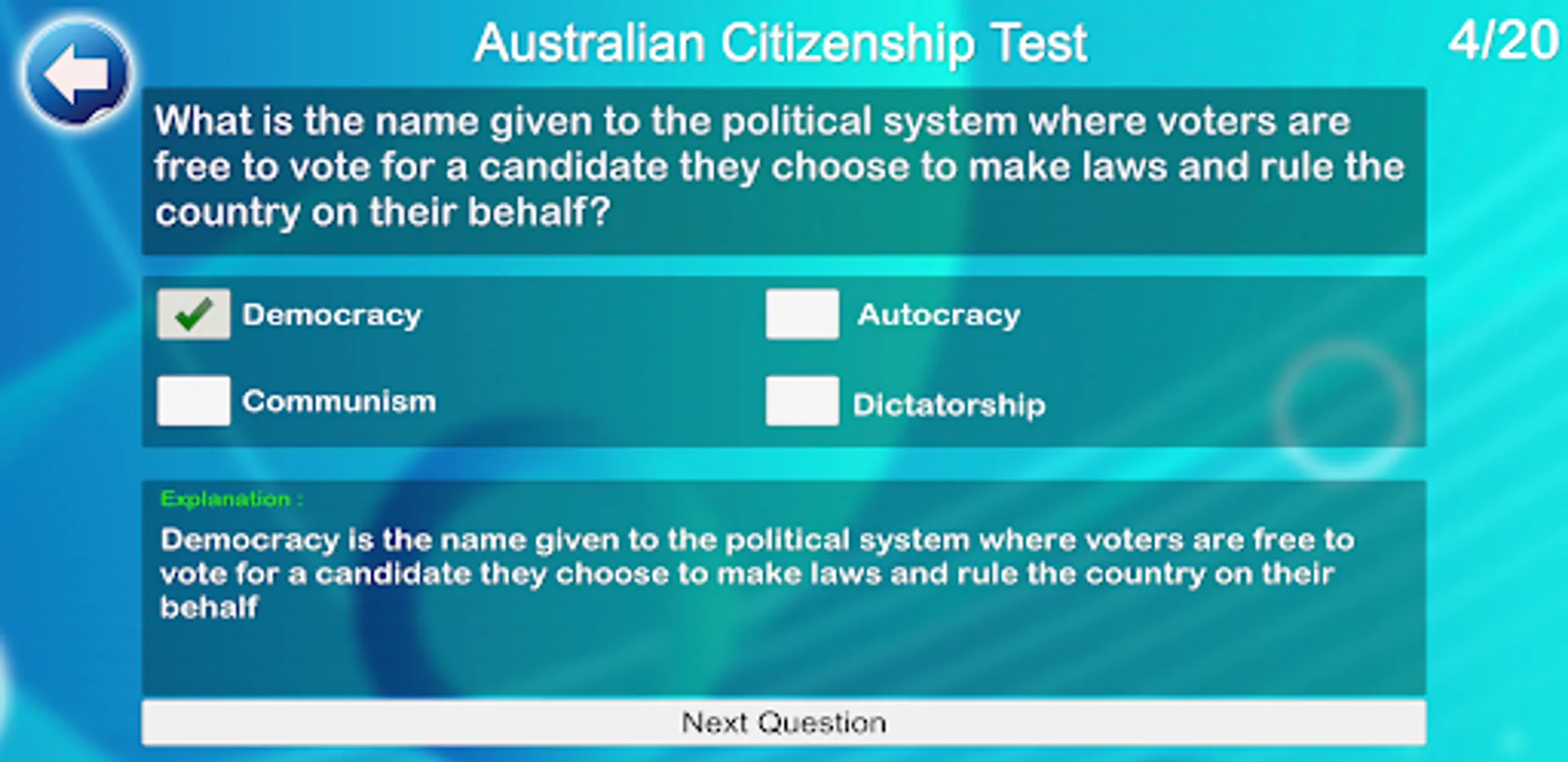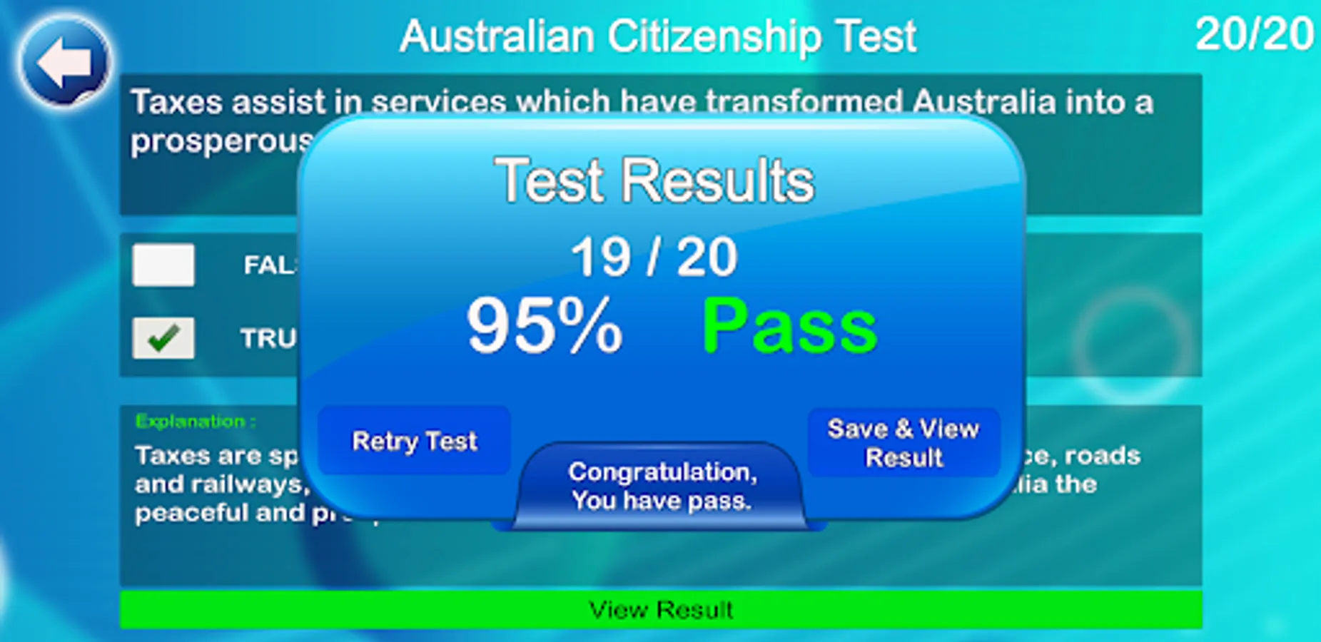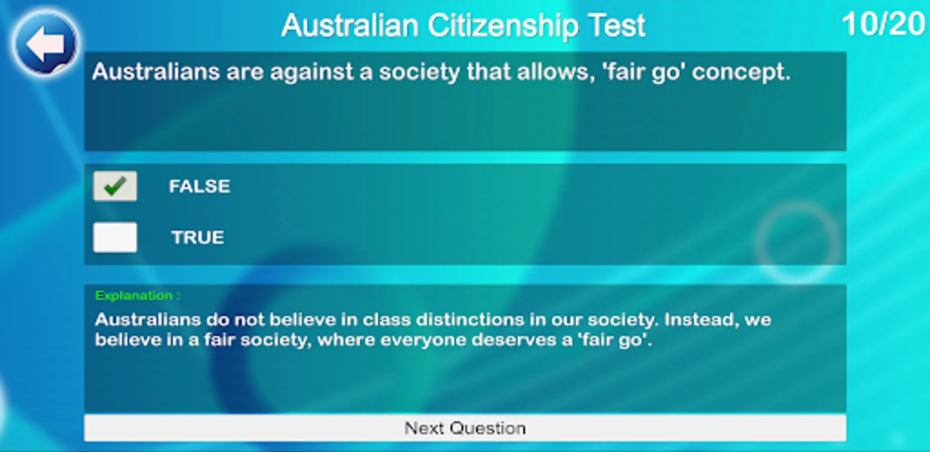 The Australian Citizenship Ed.2022 app helps you to prepare for the Australian Citizenship Test.