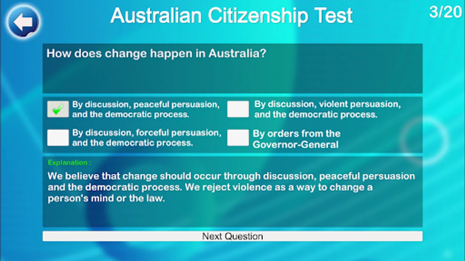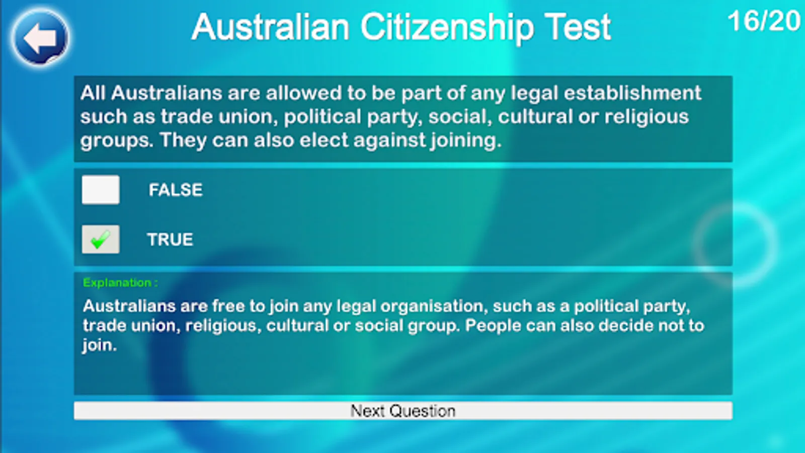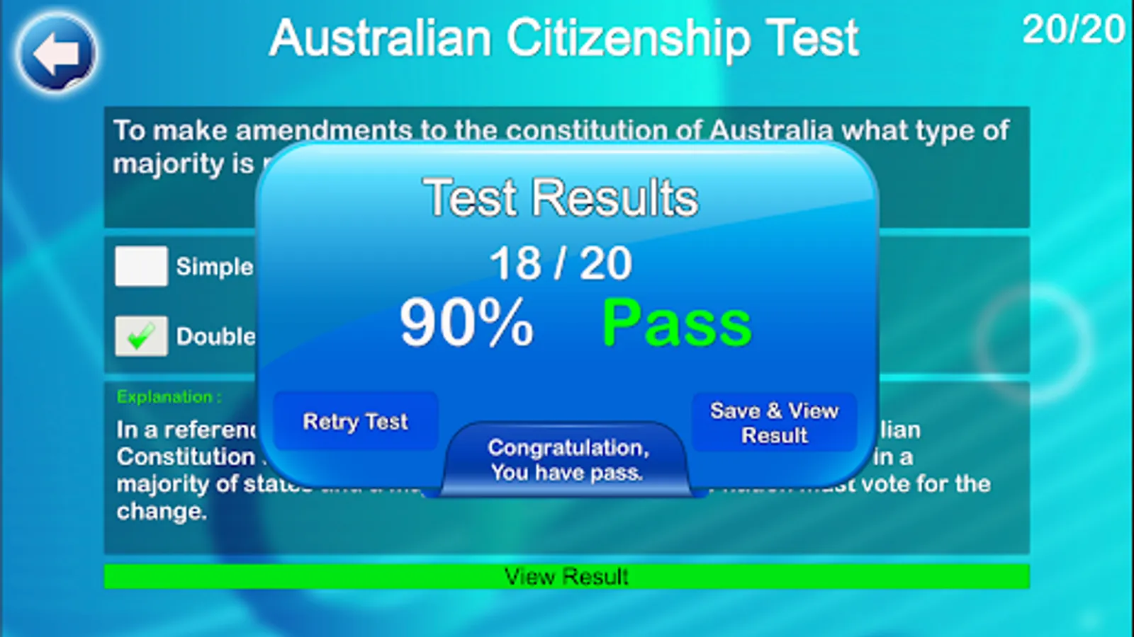 The Australian Citizenship Ed.2022 app helps you to prepare for the Australian Citizenship Test.