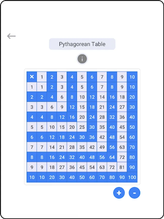 The multiplication table is a fun, simple and intuitive way for students to learn the times table and improve their math skills by taking quizzes, using flash cards, the pythagorean chart and playing carefully crafted math games.