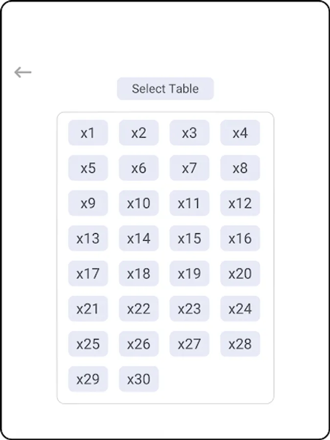 Select from a list of times tables and learn the multiples of numbers from 1-30 to improve familiarity and proficiency with the basic multiplication tables as they are an essential building block in math.